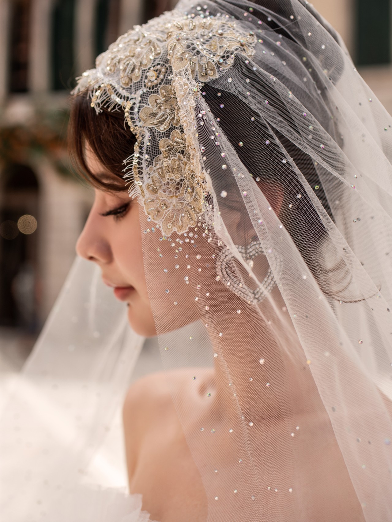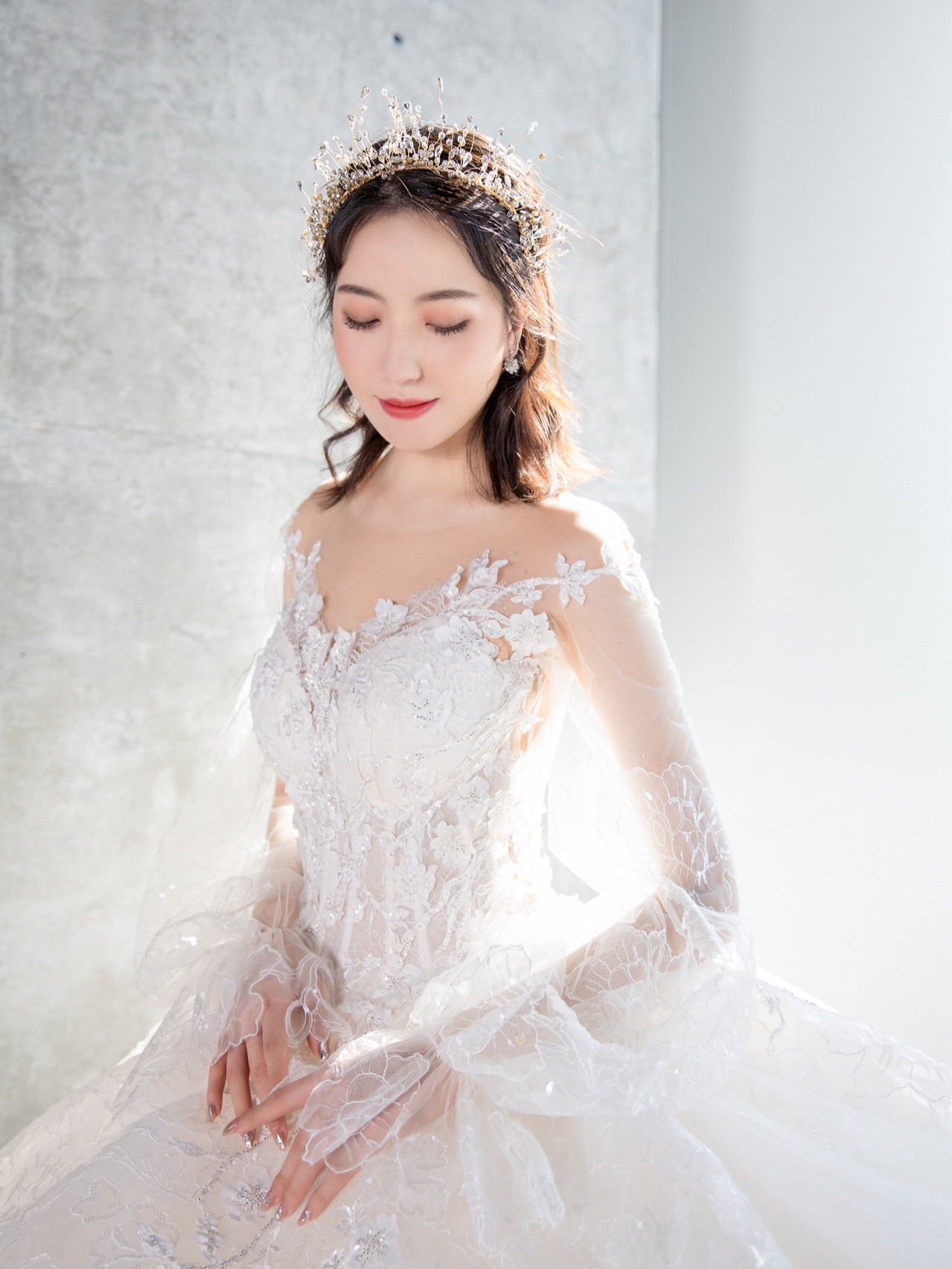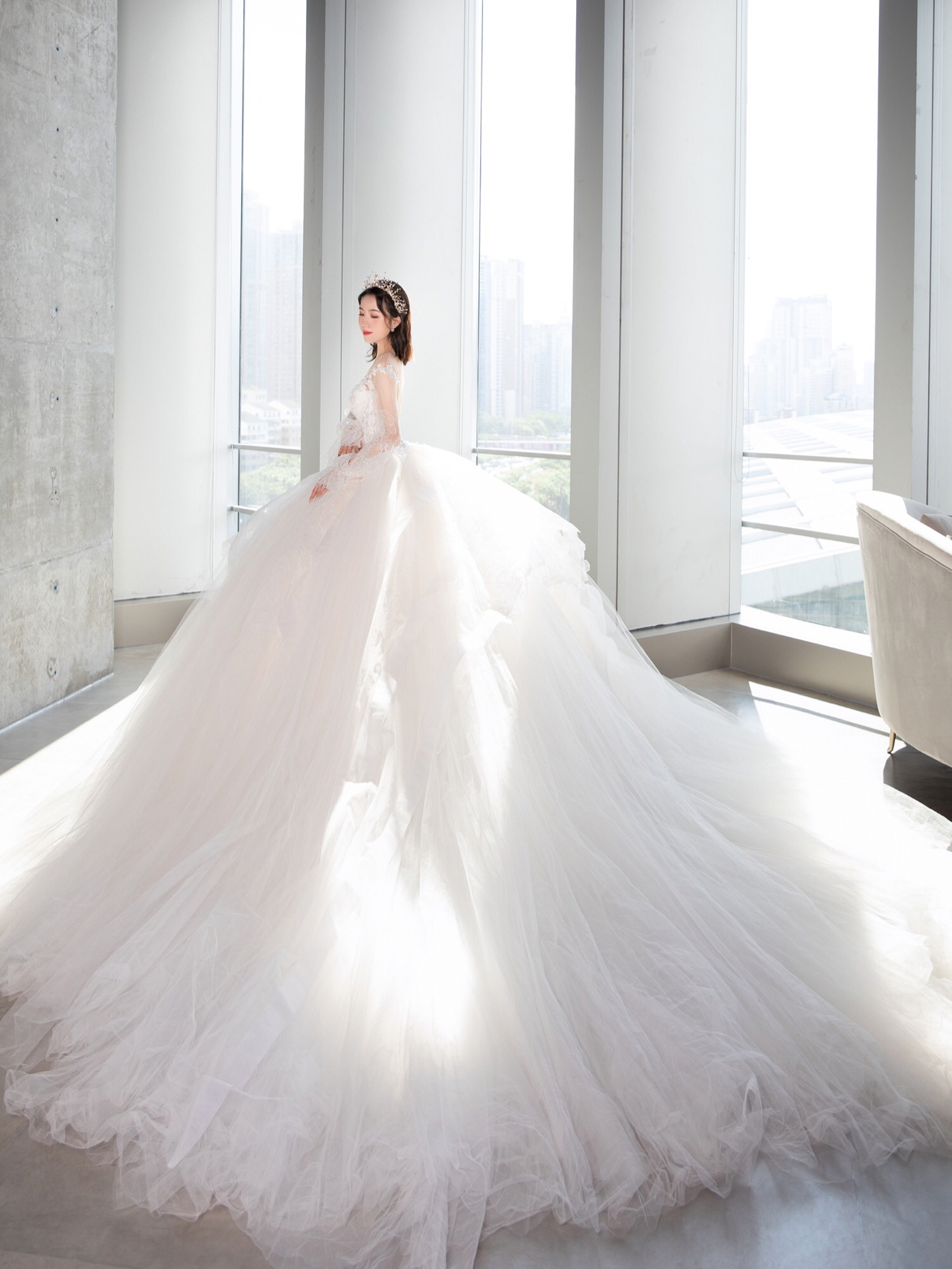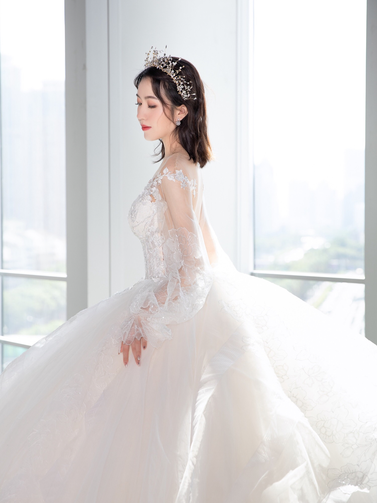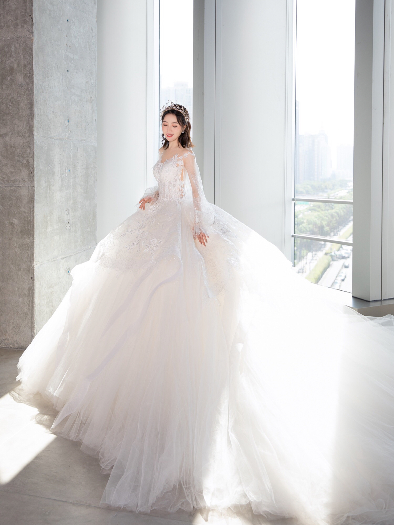 • 新品系列主纱上身是让人心动的古典蕾丝与若隐若现的仙气泡泡长袖结合💫透露出静谧轻柔的唯美气息如梦如幻的华丽大拖尾气场满满,仪式感十足🧚🏻♀