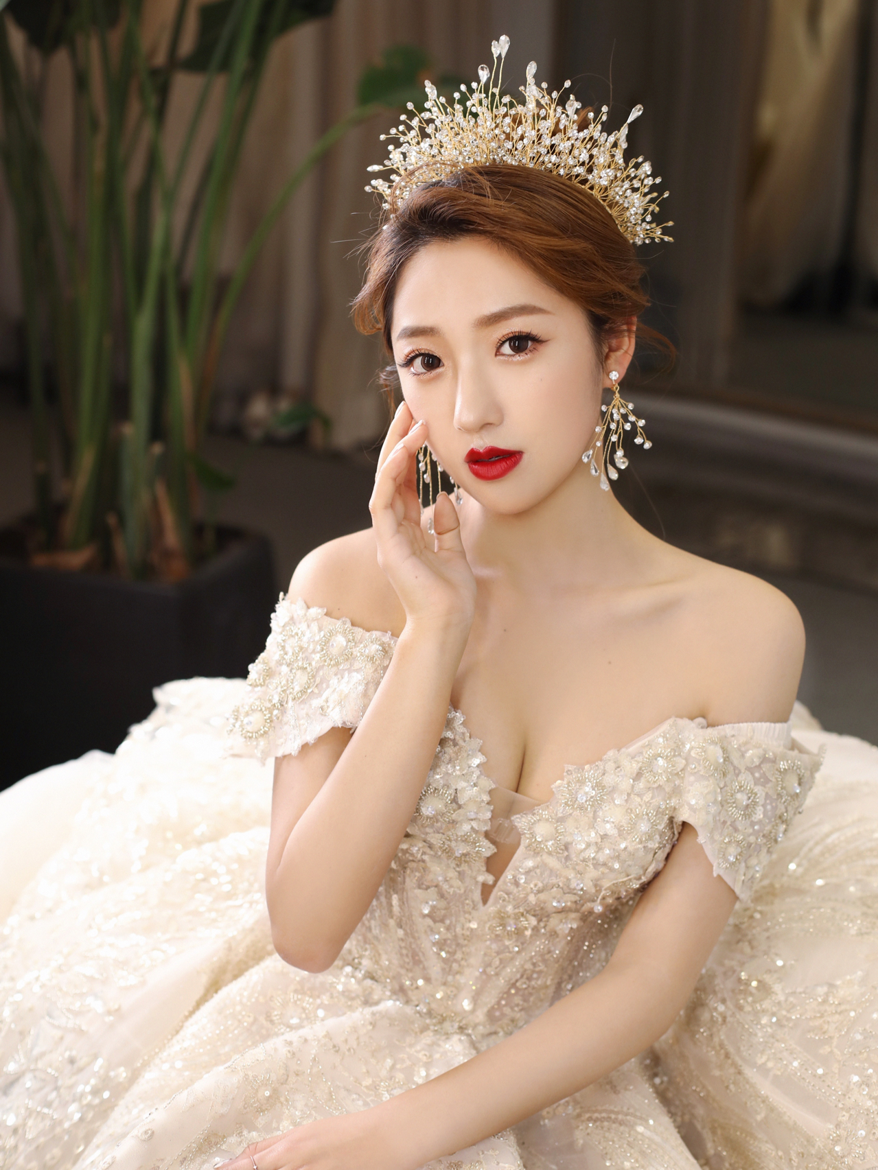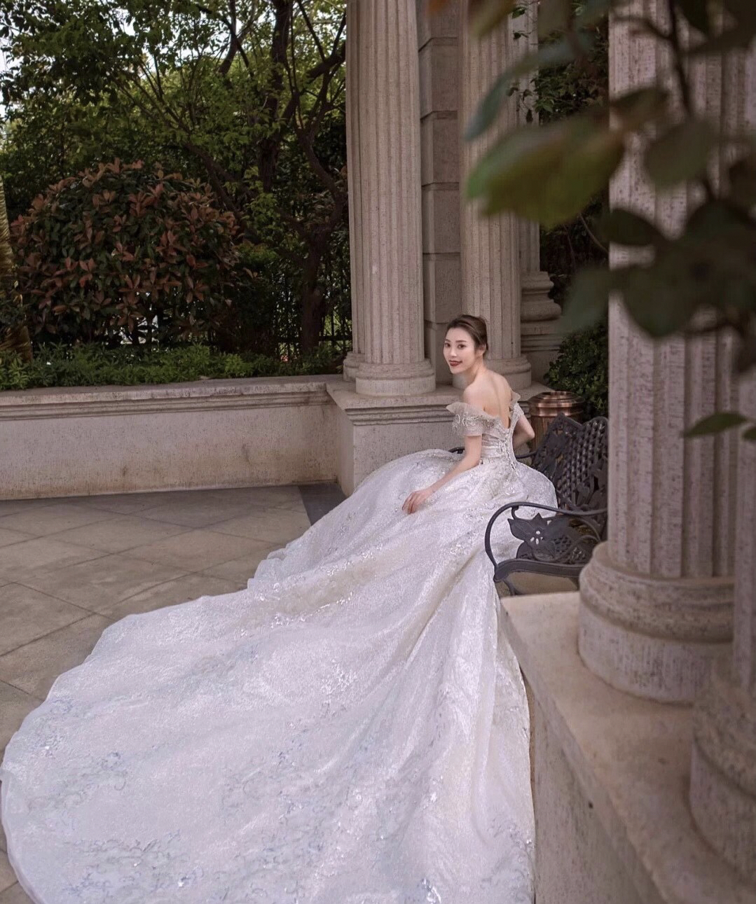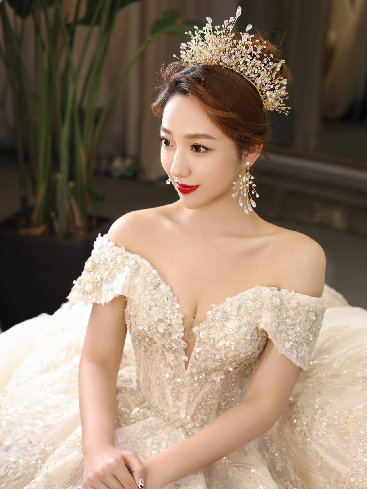 • 一字肩的亮晶晶婚纱✨真的超级适合锁骨好看的小仙女呢🧚♀️当然~其实一字肩也是微胖女生的必选款哦🌟穿上它分分钟显瘦!💌