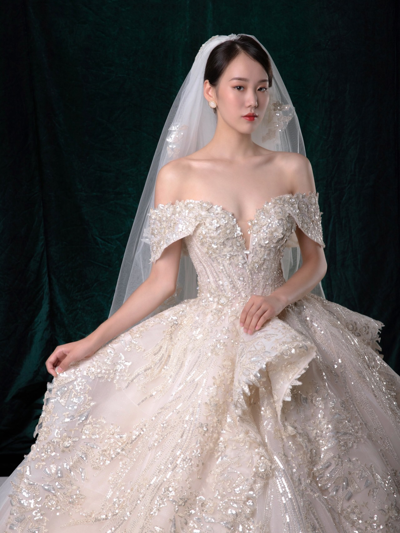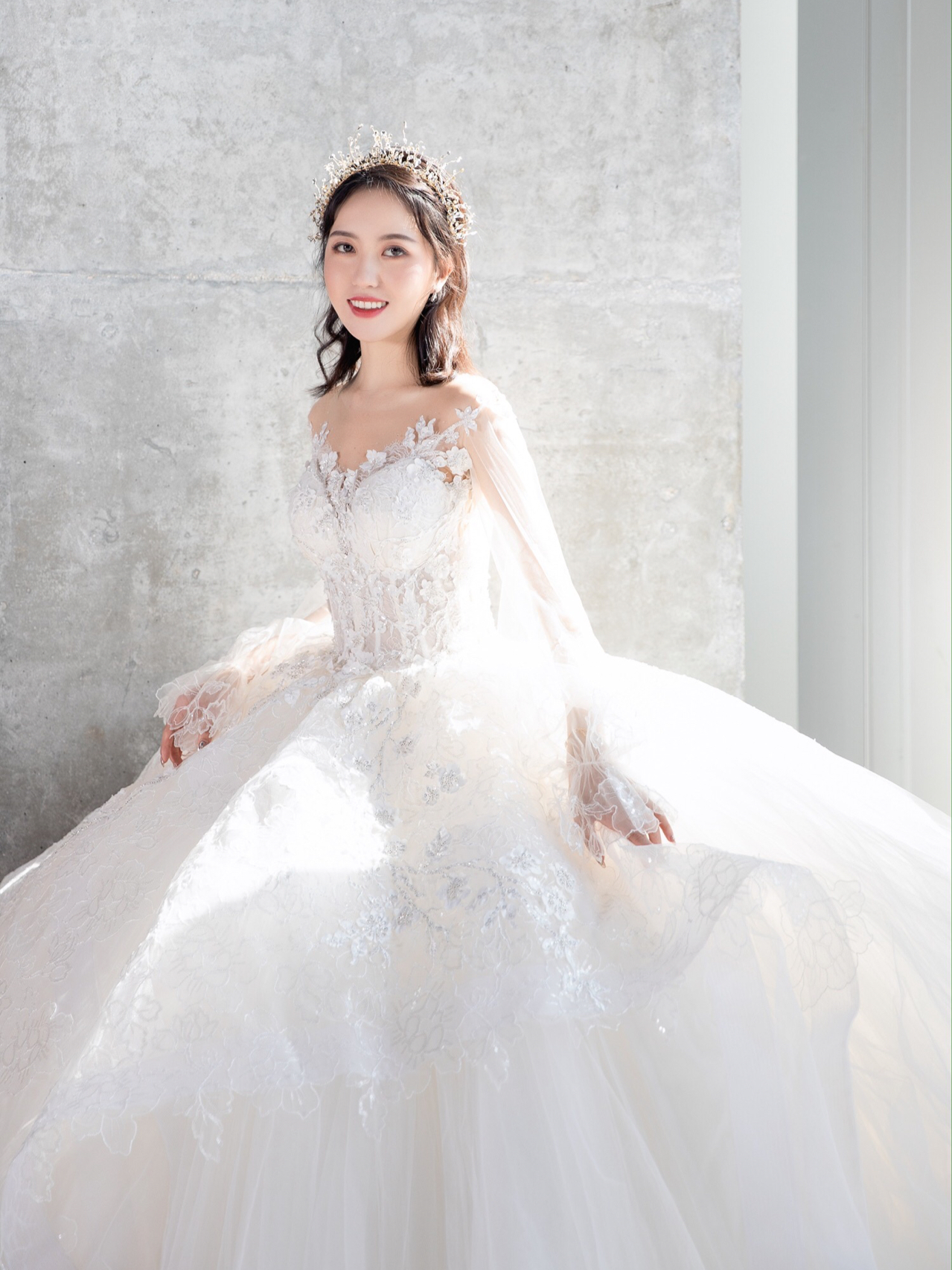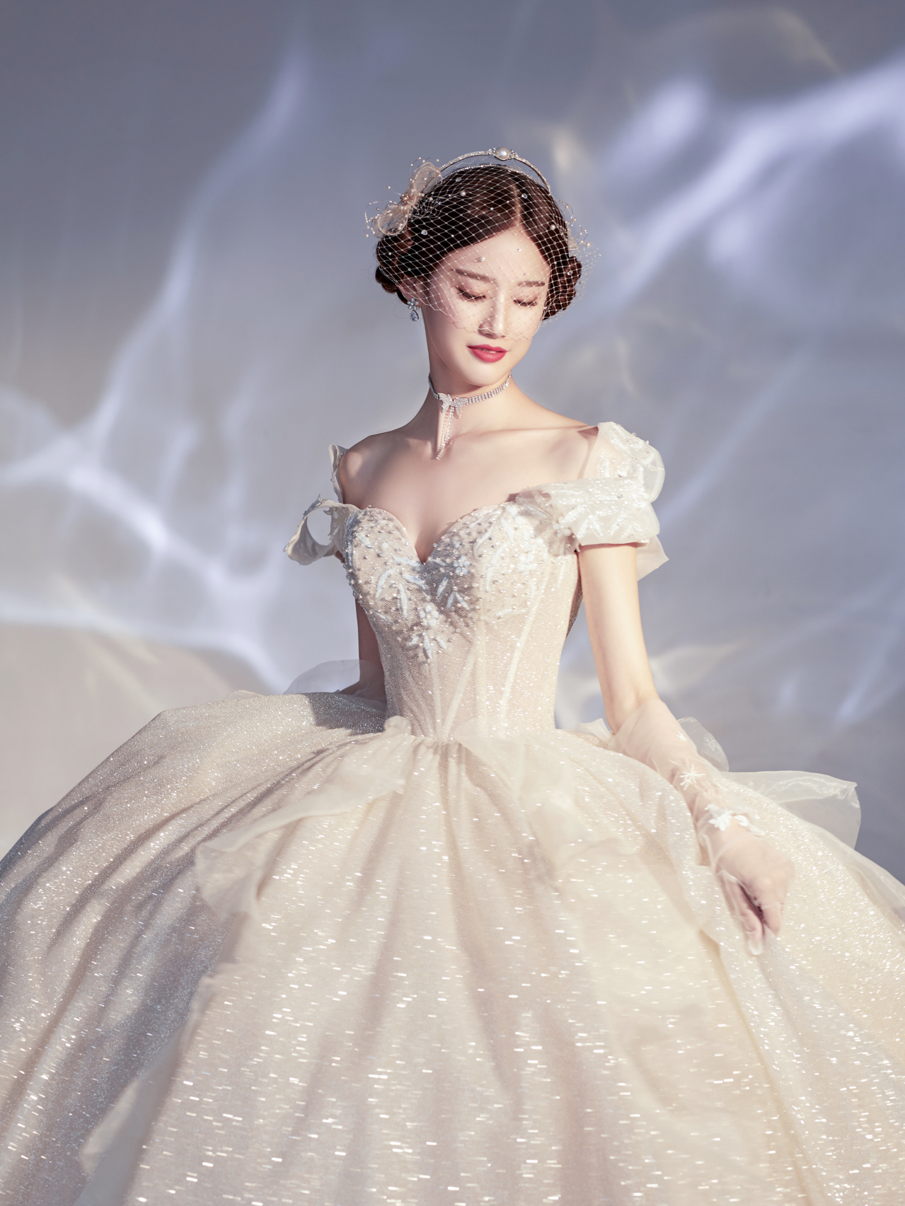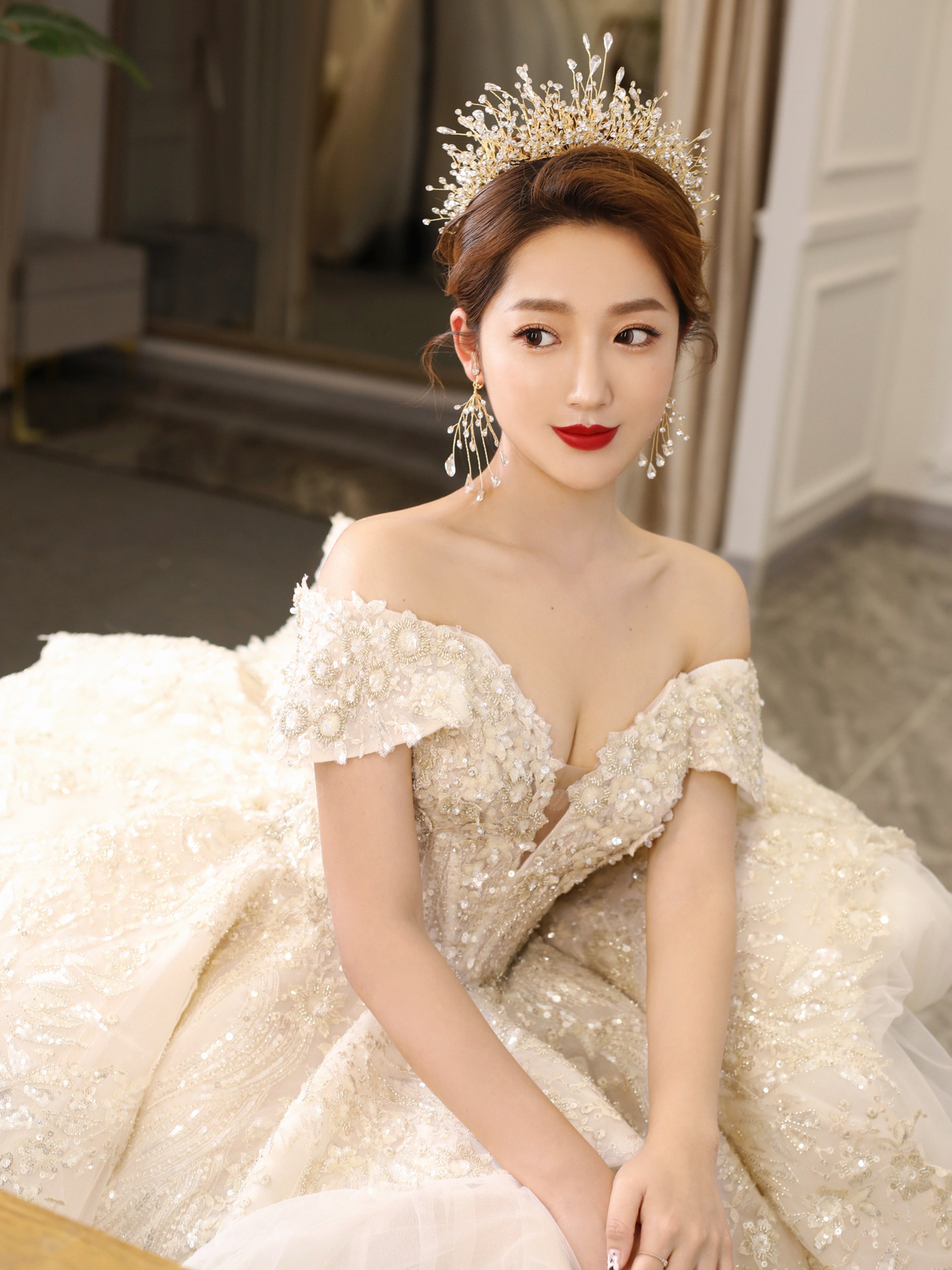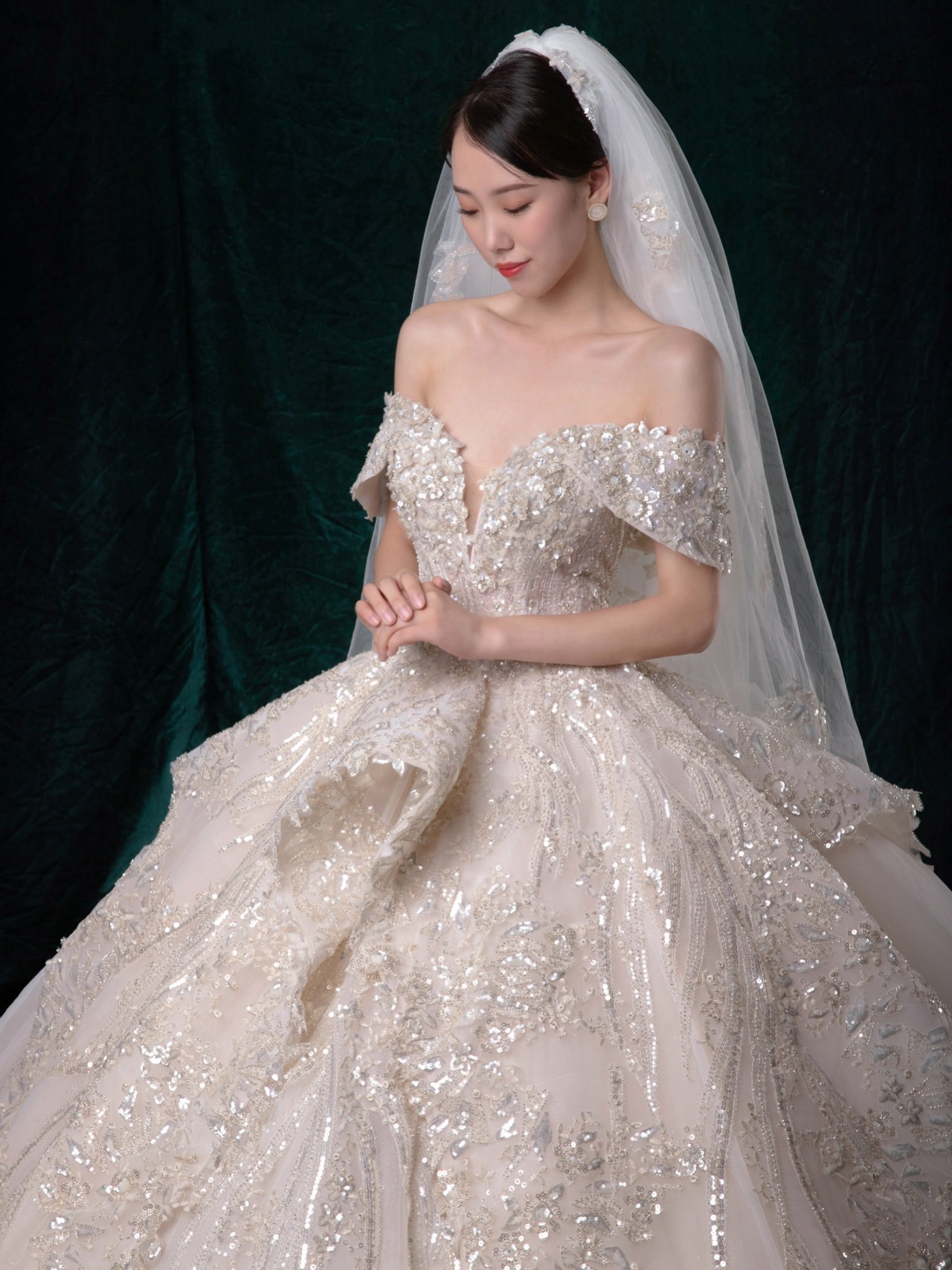 • 雲裳嫁衣馆# 钉珠与蕾丝交织下的婚纱唯妙俏丽轻纱装饰的一字肩设计巧妙绝伦下半身的宫廷感蓬蓬裙隆重而高贵