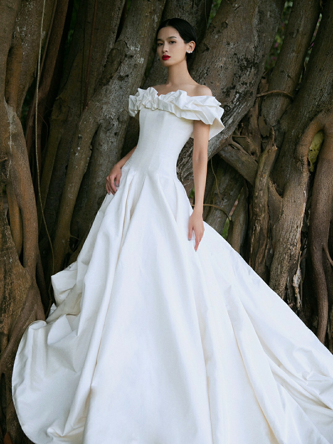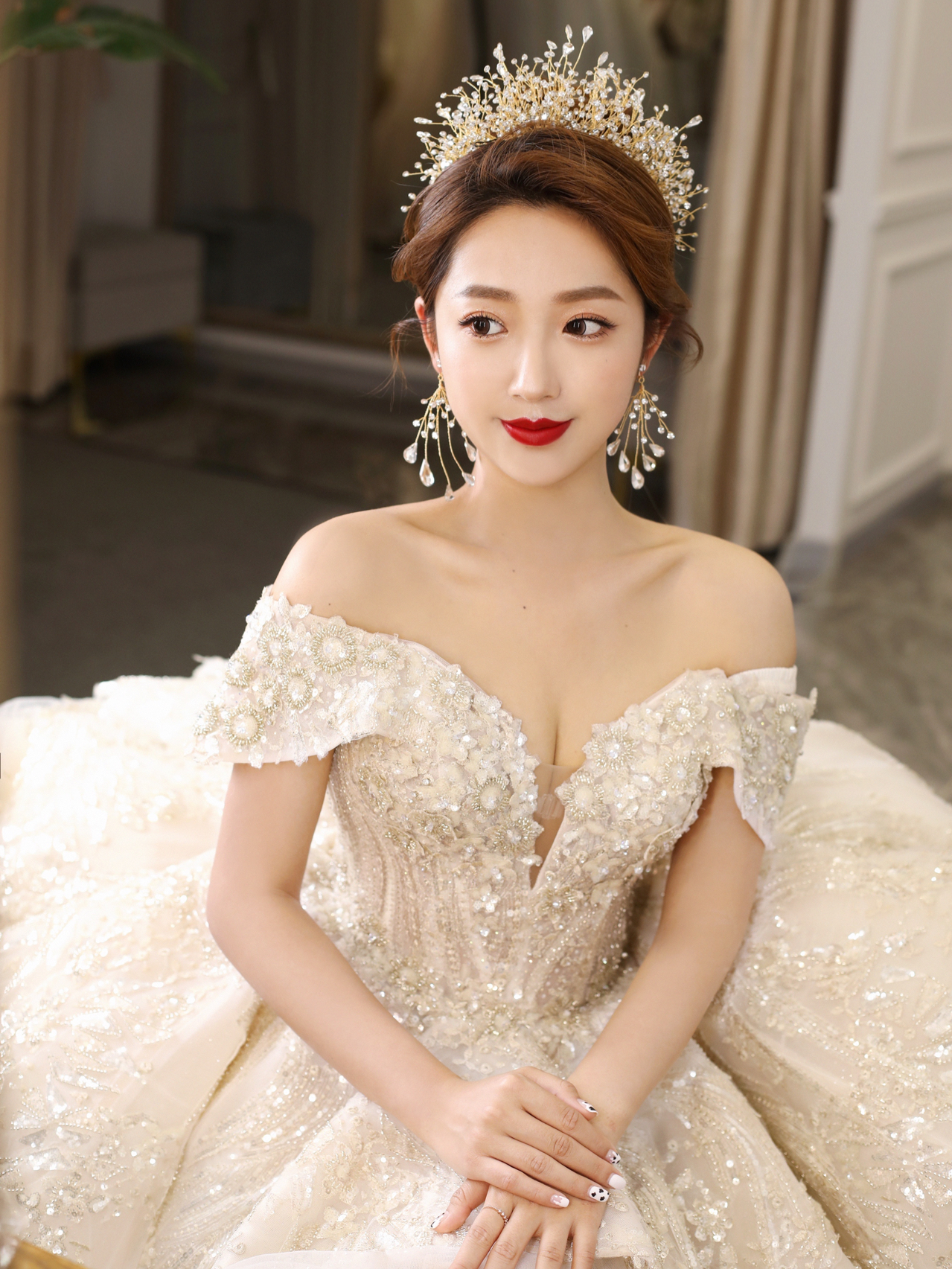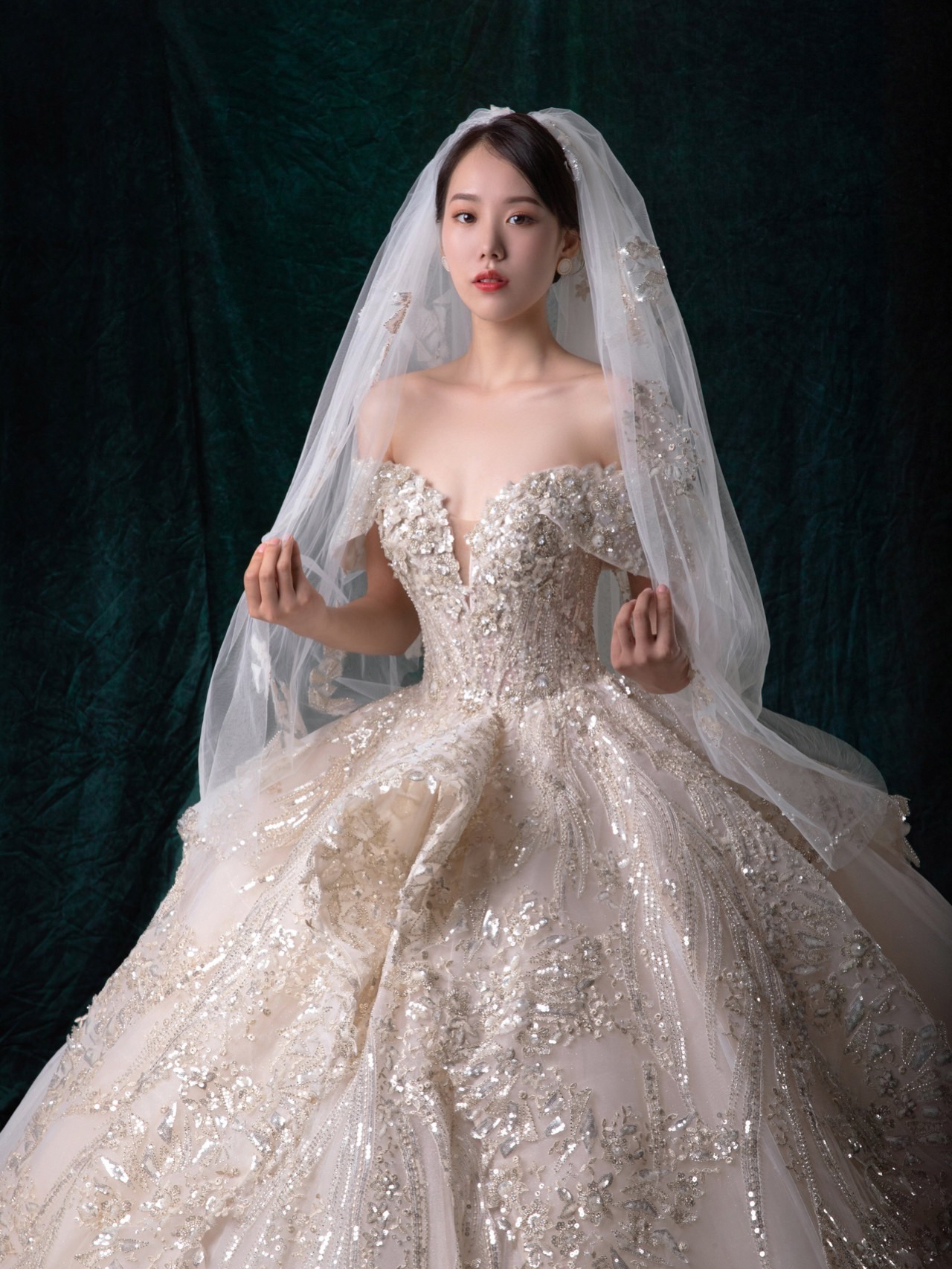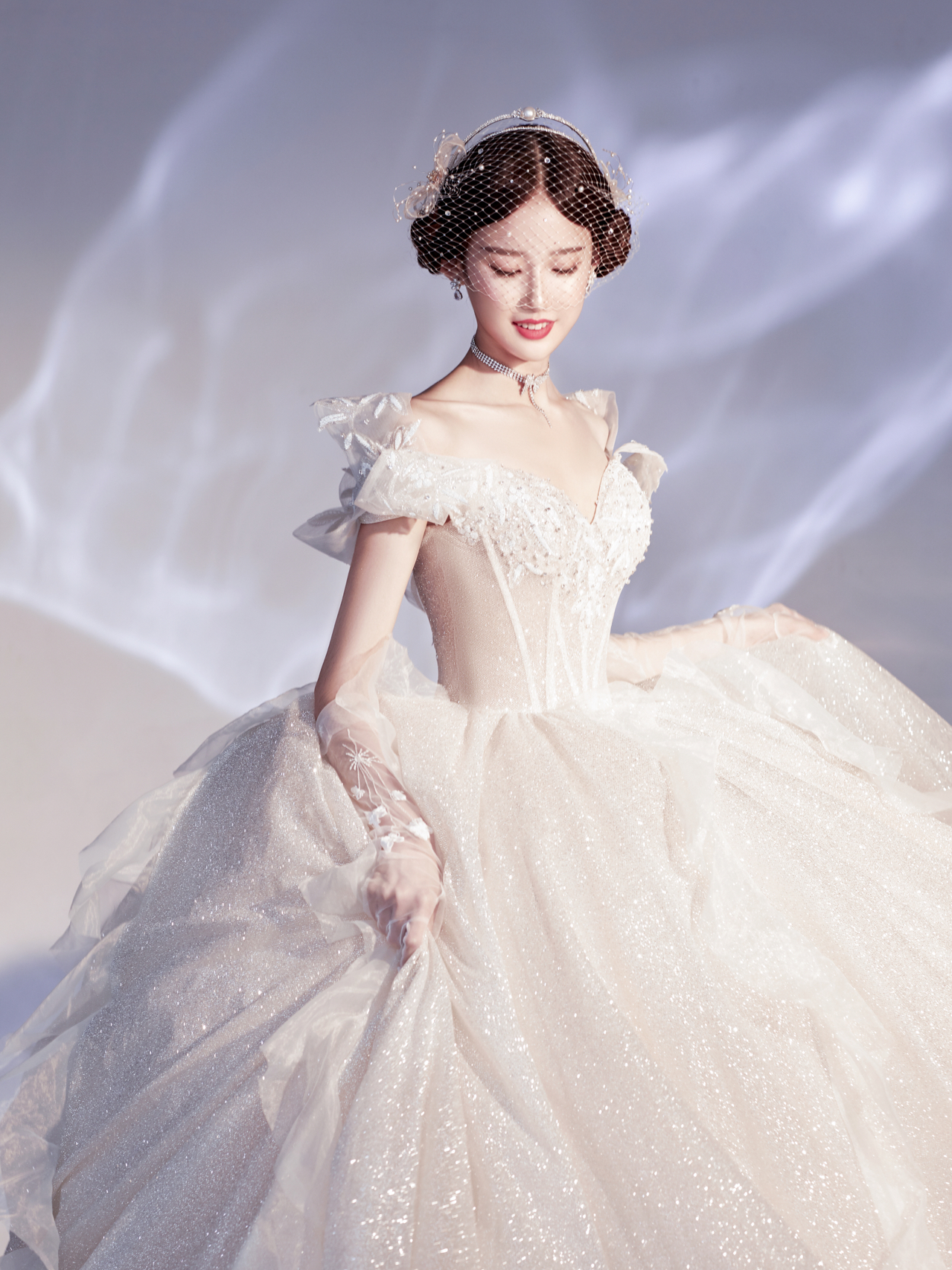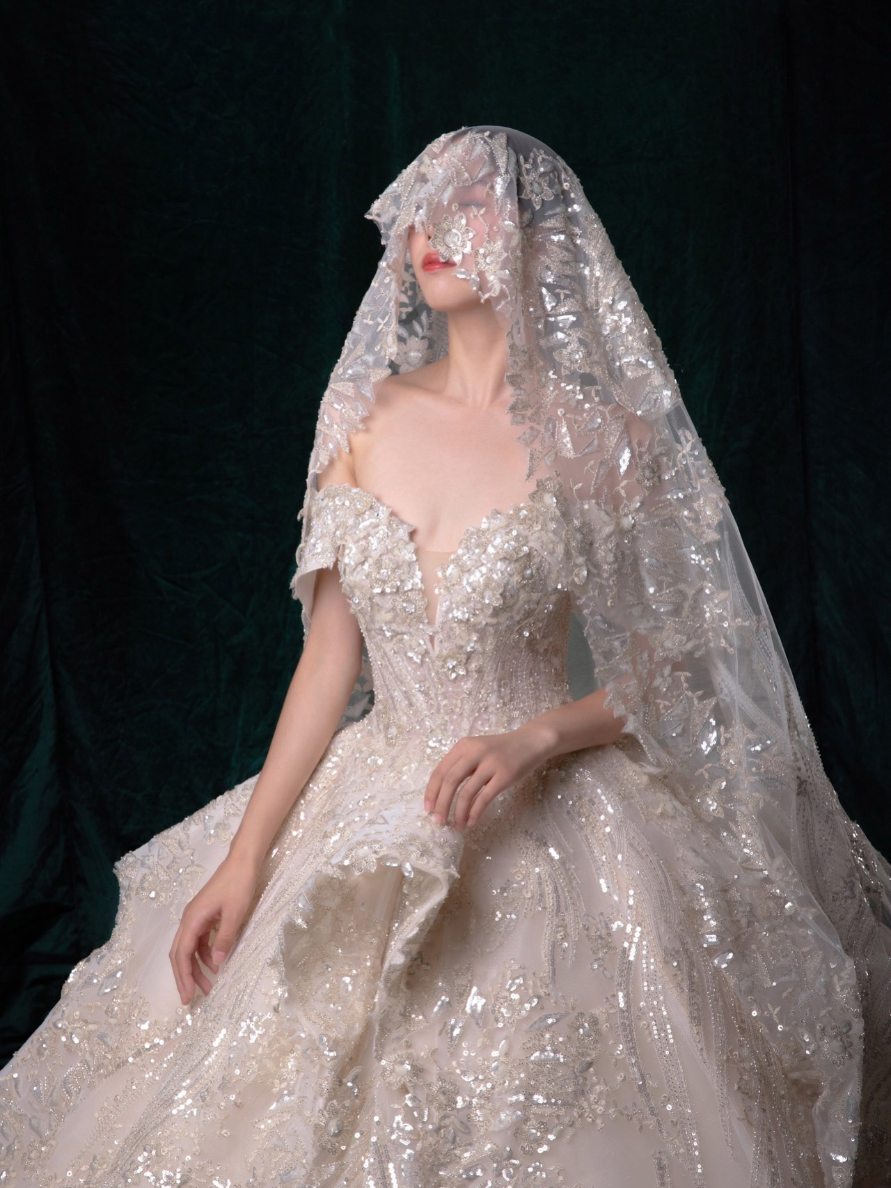 • 雲裳嫁衣馆# 钉珠与蕾丝交织下的婚纱唯妙俏丽轻纱装饰的一字肩设计巧妙绝伦下半身的宫廷感蓬蓬裙隆重而高贵