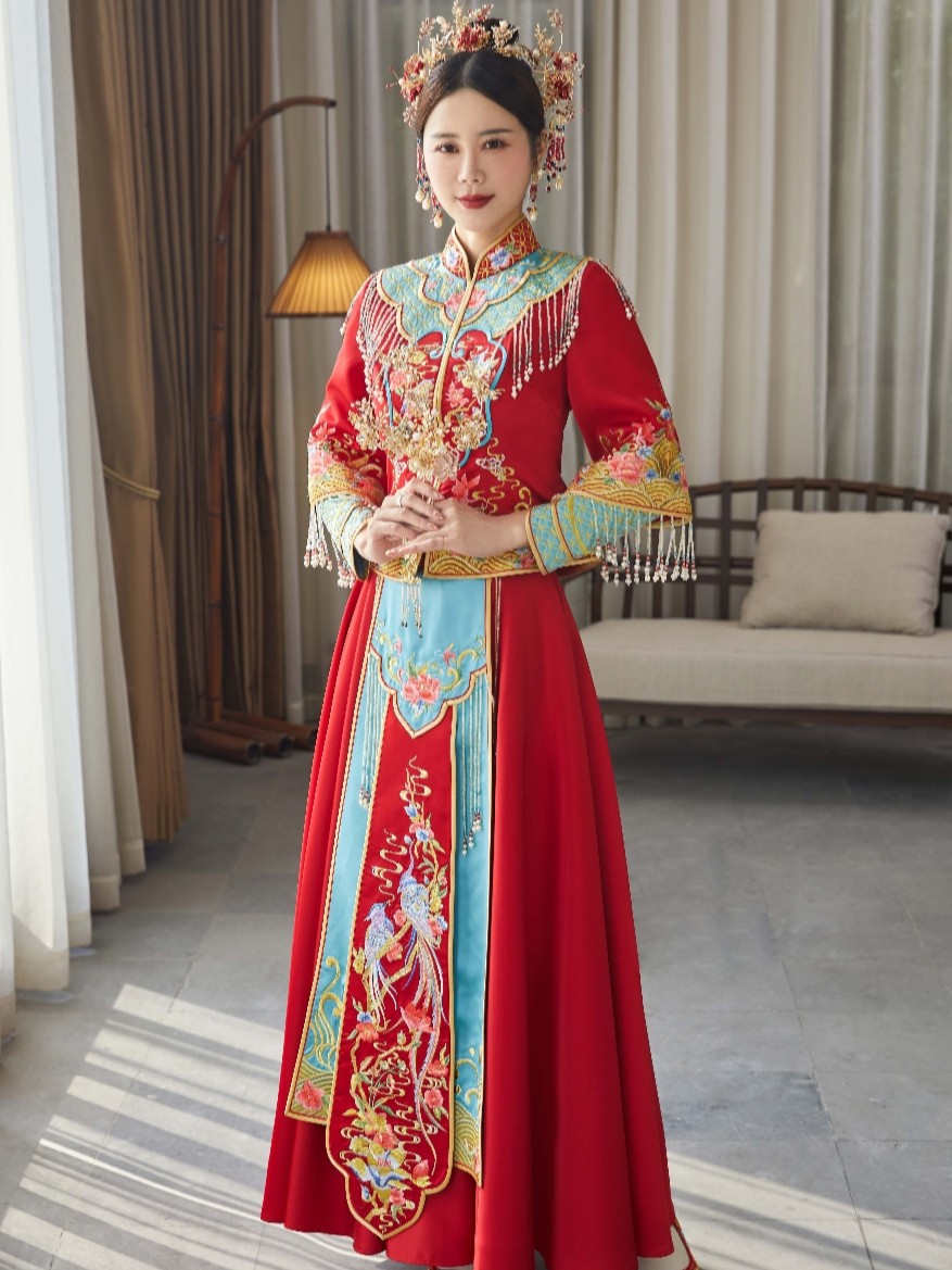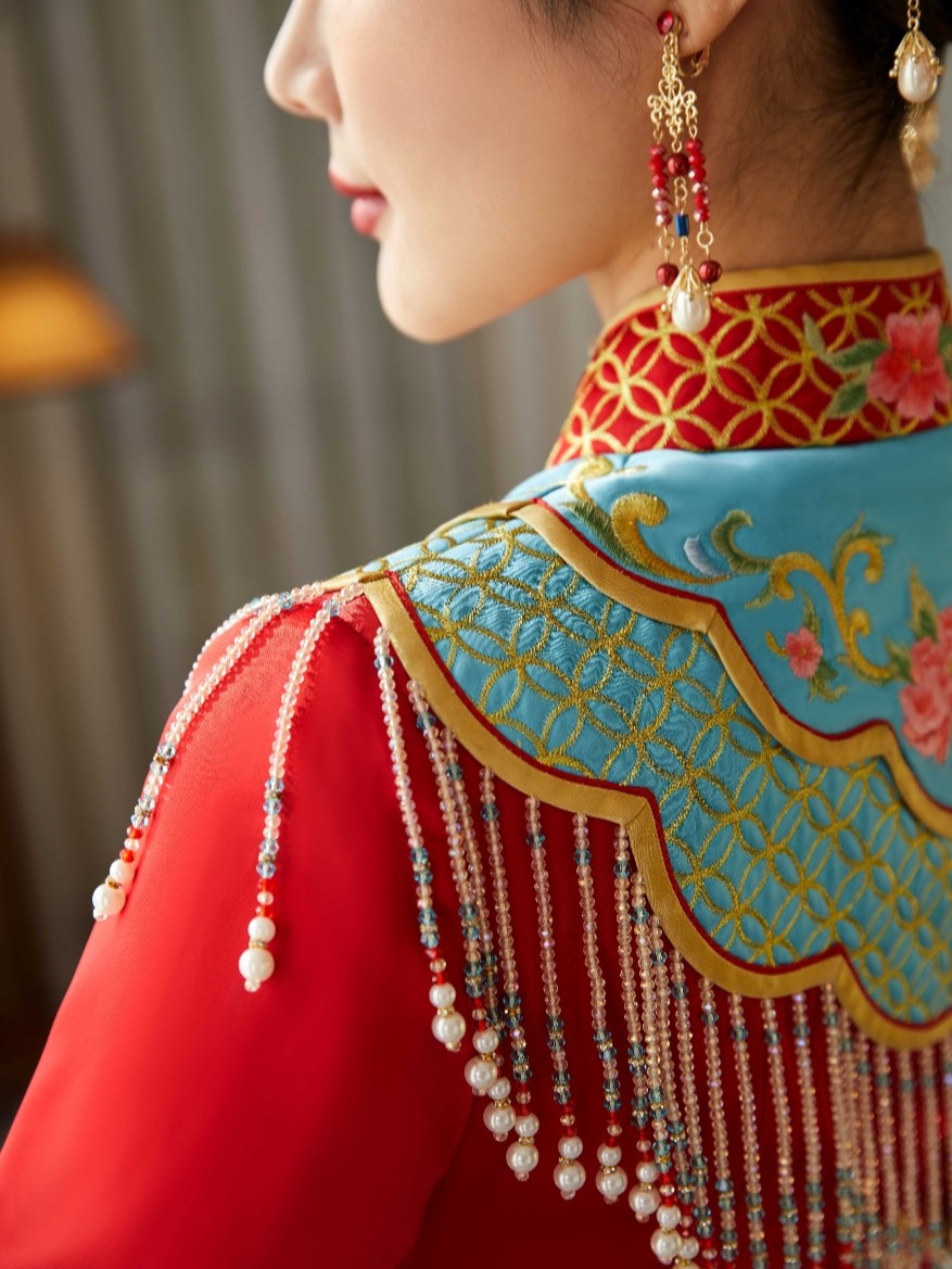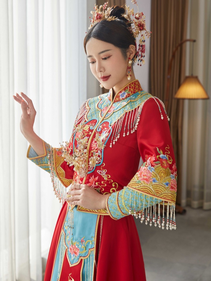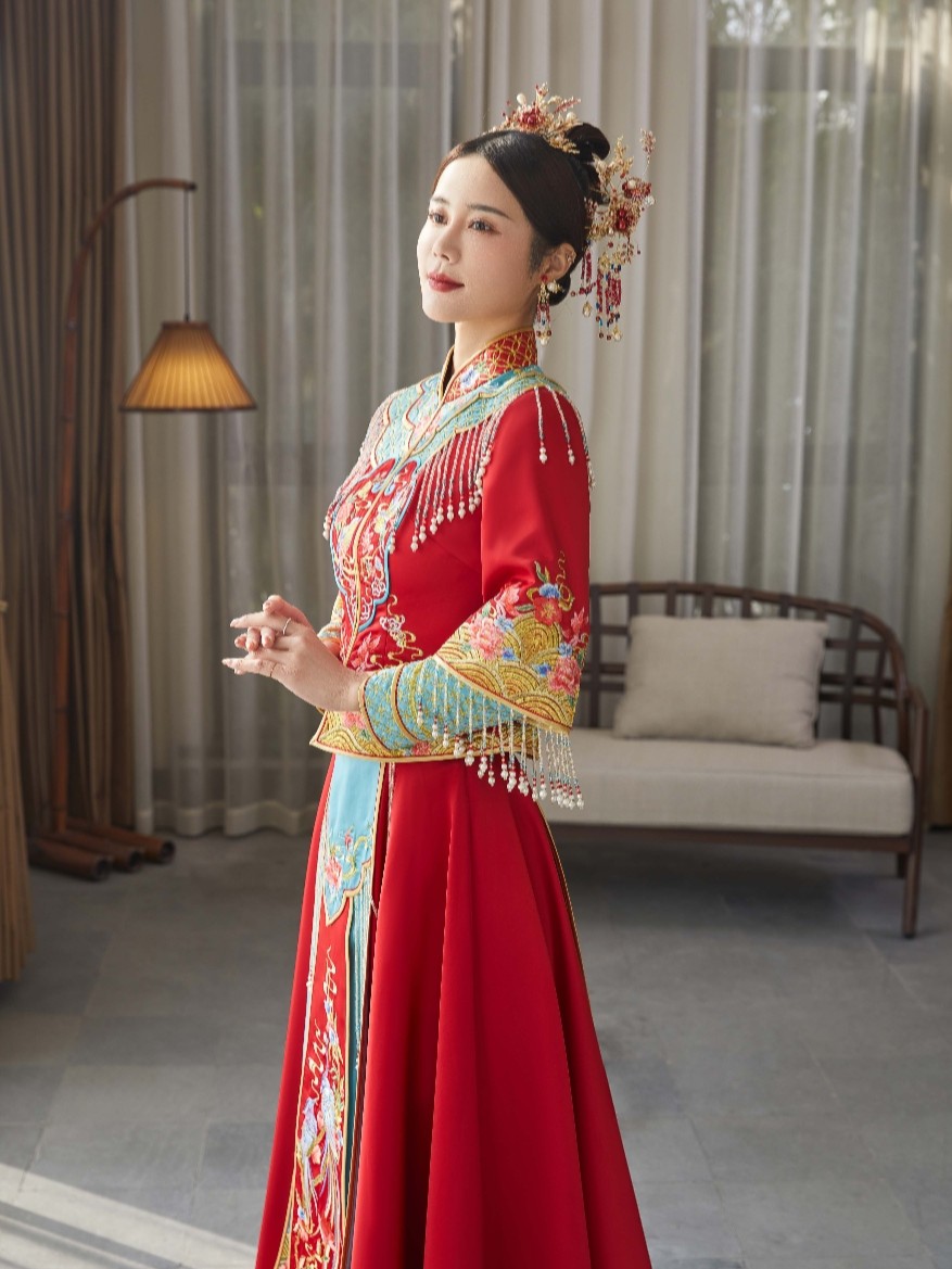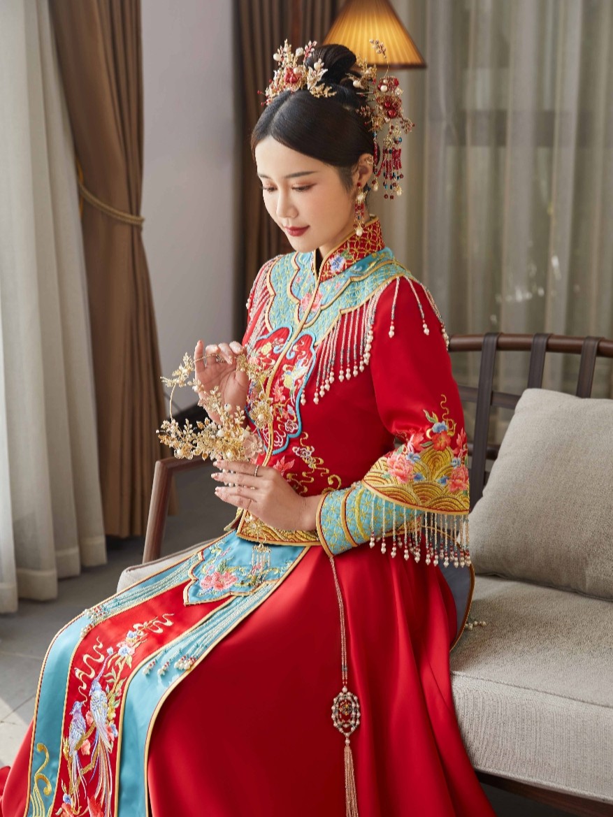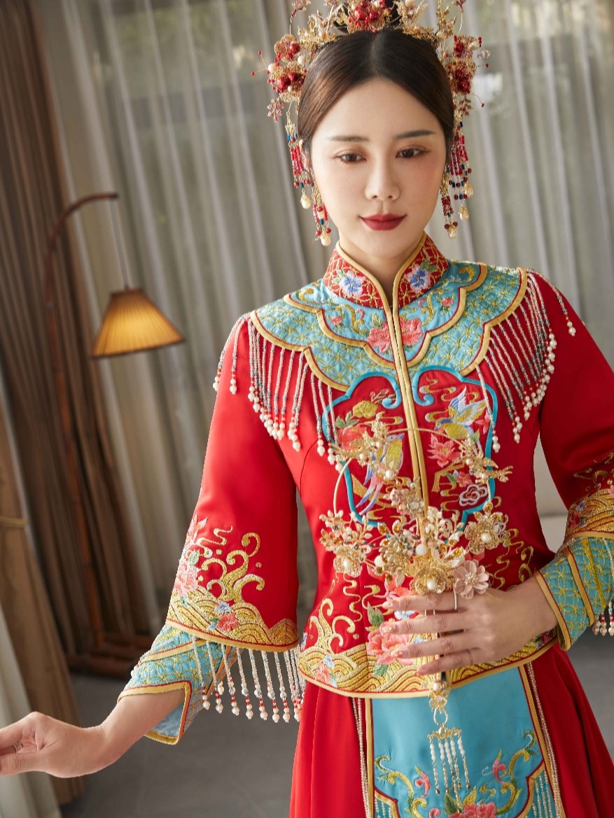 • 🎈采用倒叙独家定制面料以中国红为主,点缀手工立体绣花🎐将喜庆与华丽完美融合体现浓浓的中式女子典雅韵味🎀经典立领设计,凸显修长颈部九分袖设计让嫁衣不再古板🎐展现纤细手腕,显得娇美可人西式剪裁,呈现女子曼妙身姿💘整体看起来优雅又秀丽