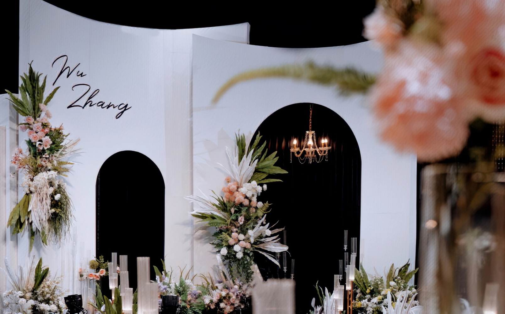 选择这家店的原因是,因为之前参加了一次公司同事的婚礼,现场就是他们家布置的,效果还不错,非常漂亮。整个流程从进店到现场布置都很顺利,而且和工作人员的沟通也很顺畅。他们家的设计师也很棒,设计理念很超前,让人很满意。