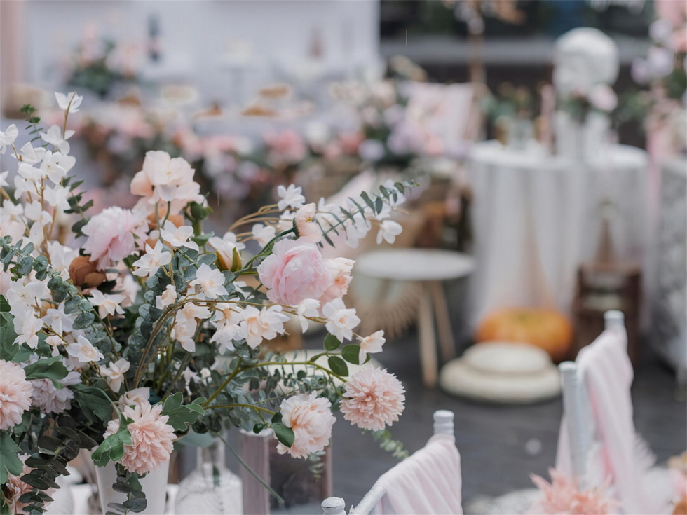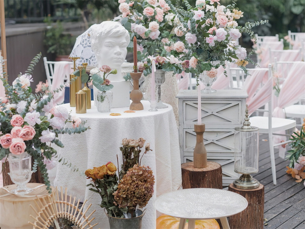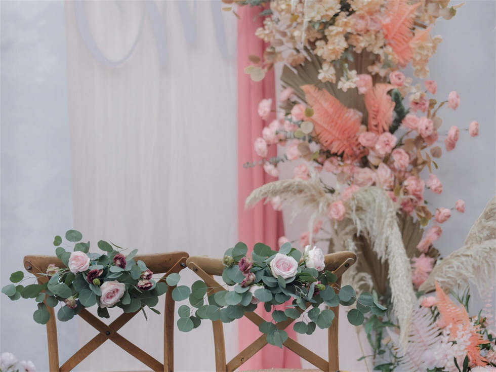 清新治愈 粉白绿森系户外婚礼