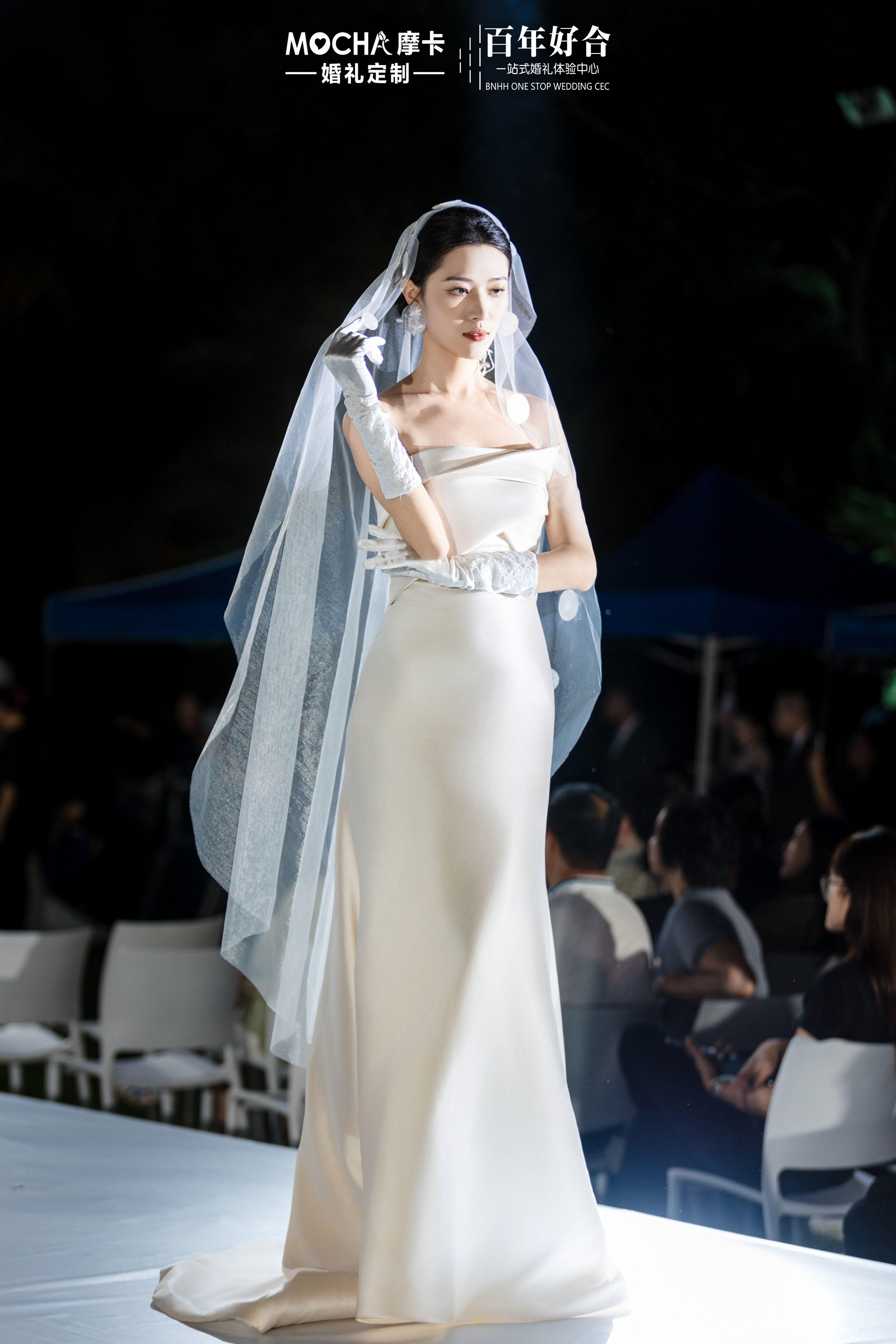 月光绸缎 抹胸鱼尾缎面婚纱