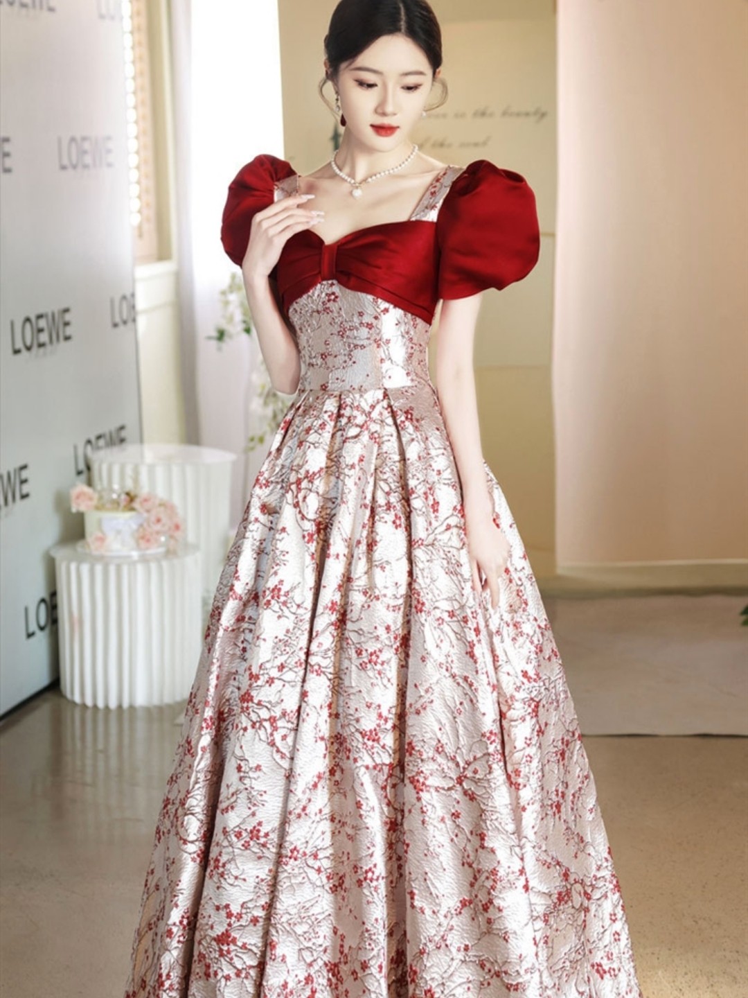 泡泡袖蝴蝶可爱款减龄明星同款礼服