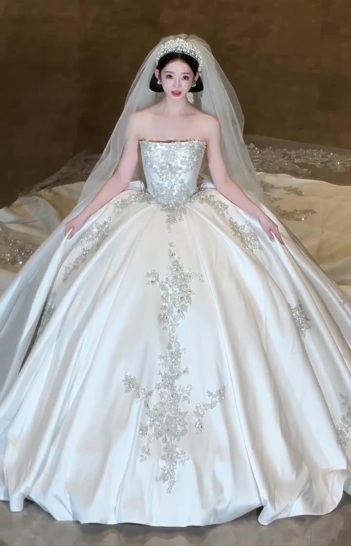 这就是韩剧女主出场的温柔缎面婚纱