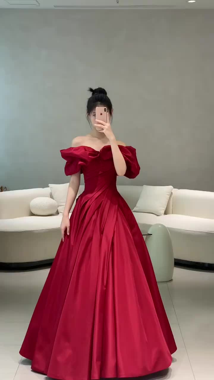 塔夫绸一字肩