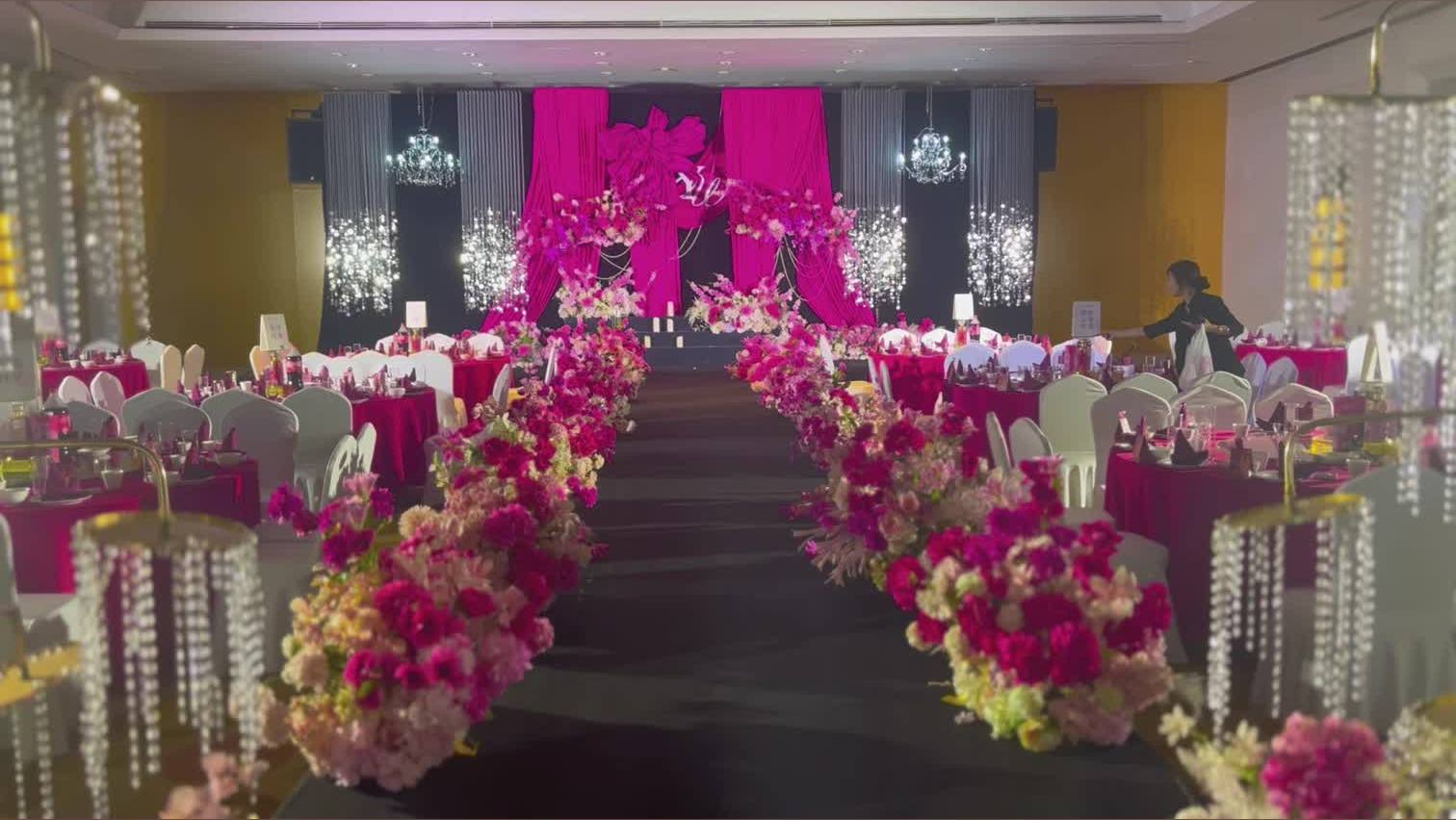 【UM婚礼】陕西宾馆石榴厅玫红水晶亮片
