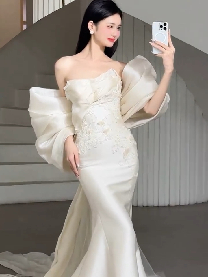 本初|蕾丝缎面拖尾