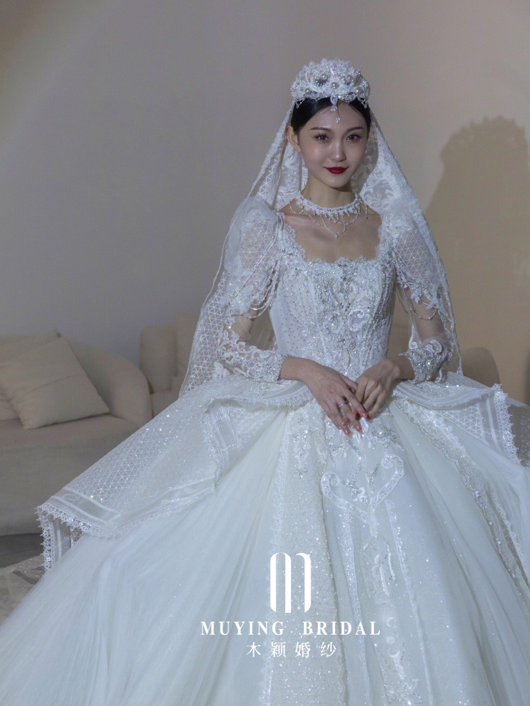 一款专属于女王的长袖复古婚纱