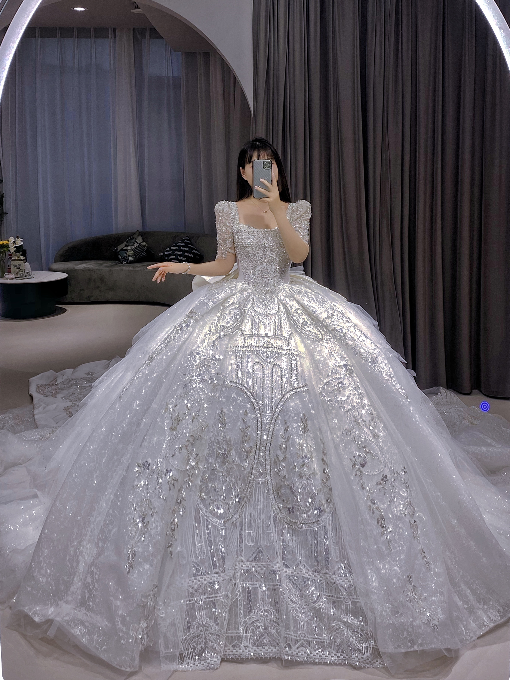【上白婚纱】重工长袖主纱