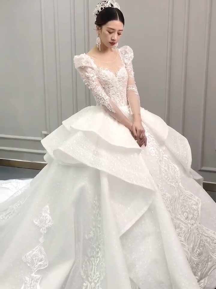 高定蕾丝长袖主纱