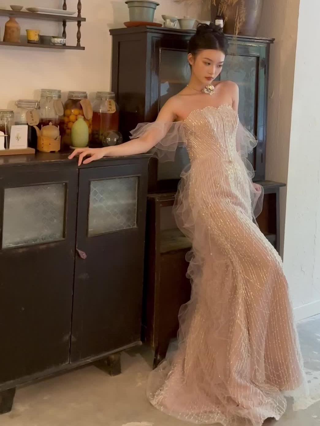 仙气飘飘的粉色鱼尾礼服