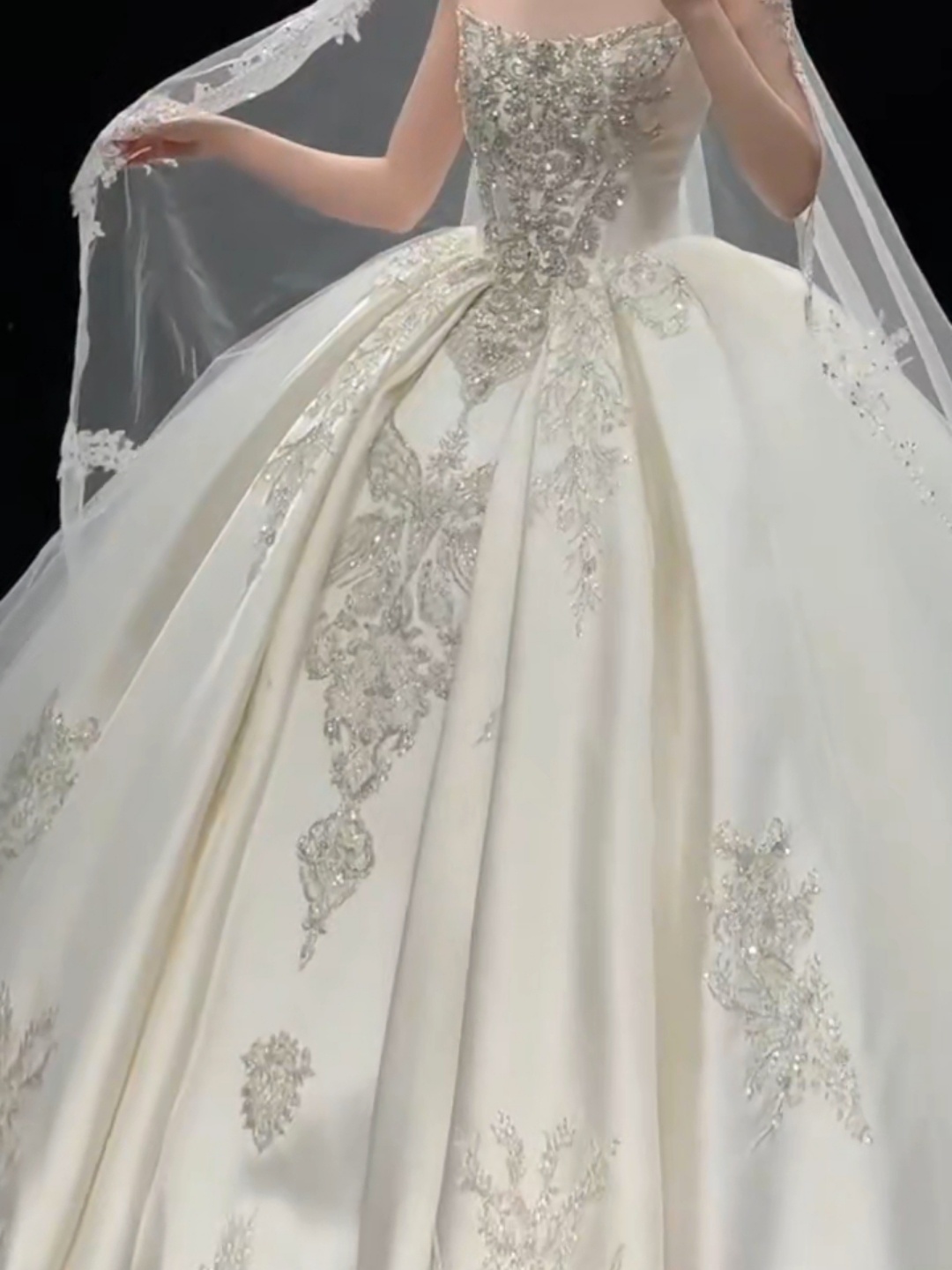 短袖缎面婚纱