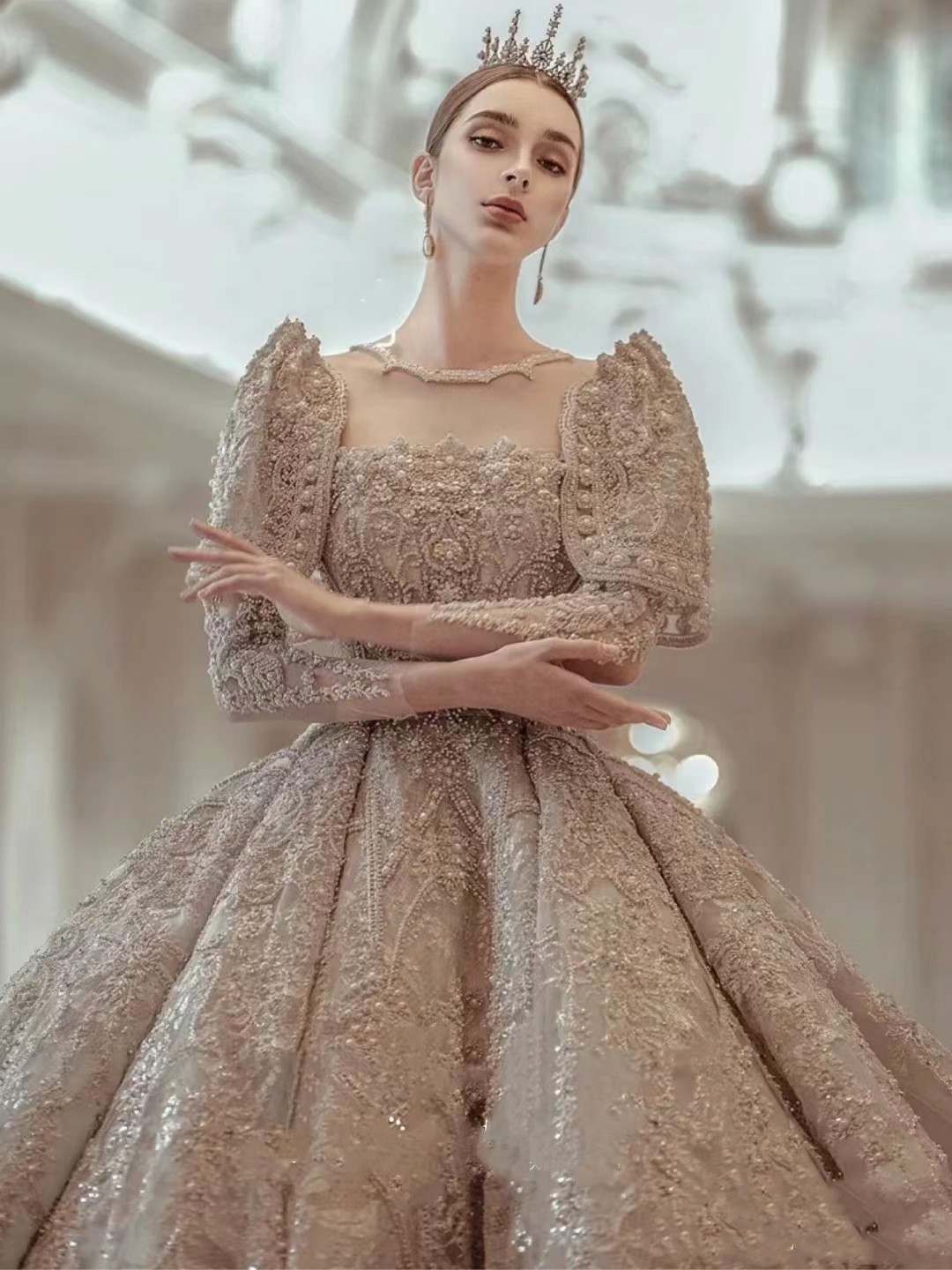 SURMOON复古典雅大拖尾婚纱
