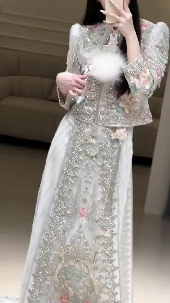 正版天玺香槟色重工修身龙凤褂