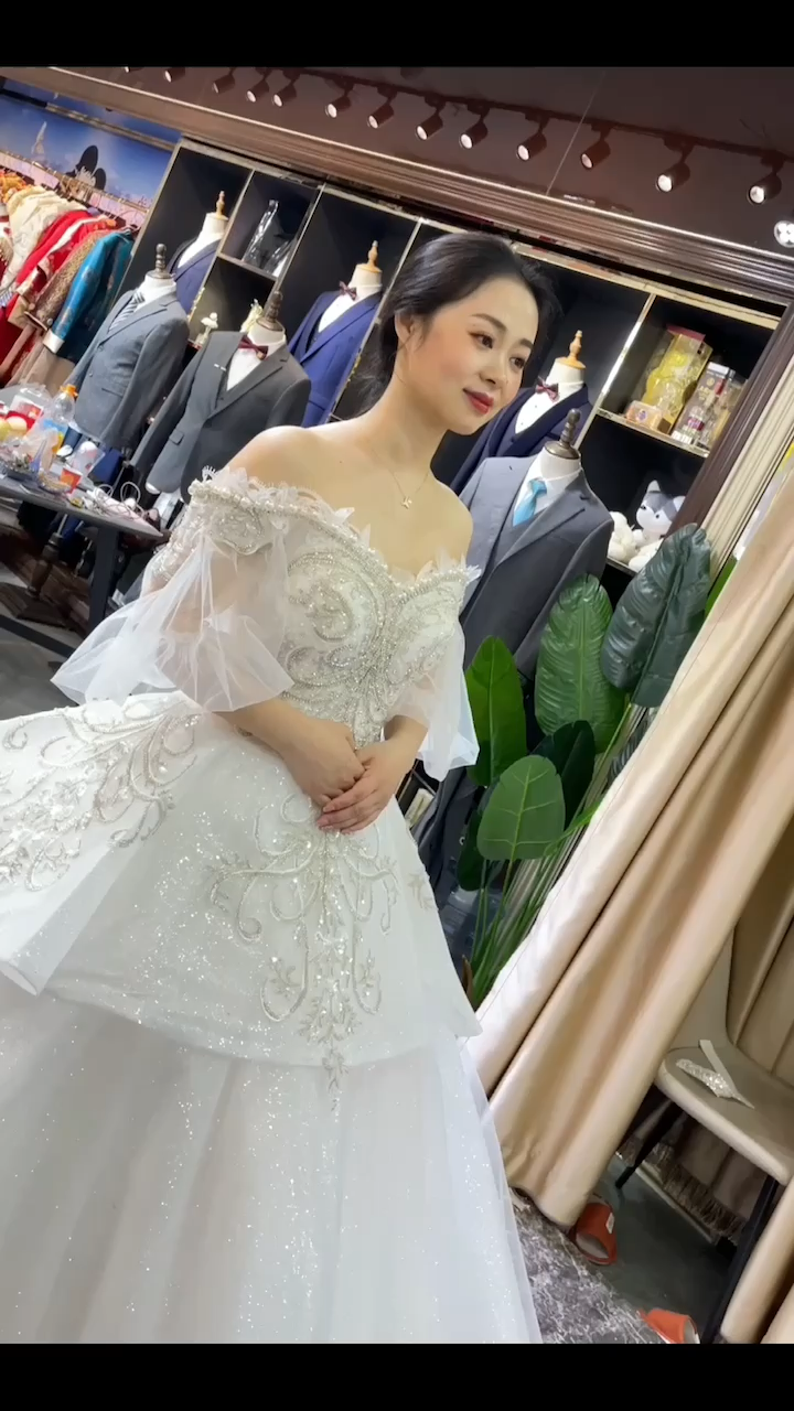 仪式纱香槟一字肩复古妆面