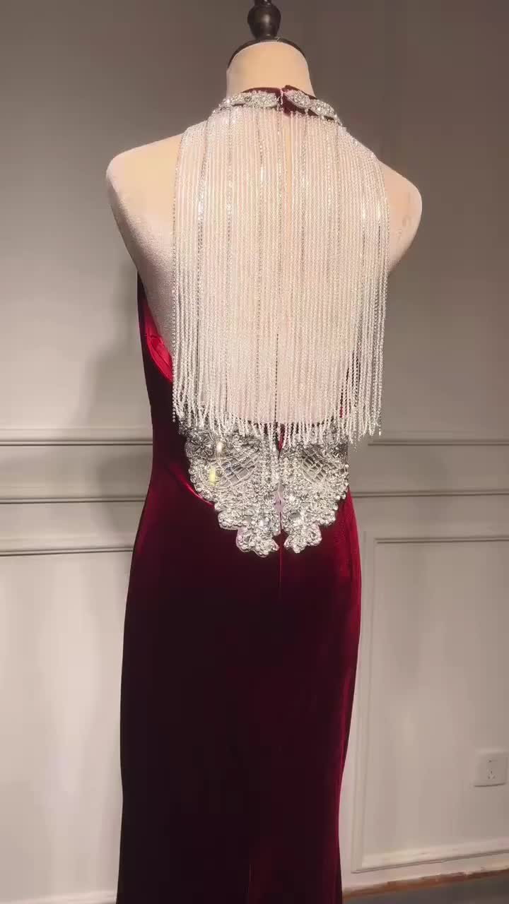 修身露背丝绒礼服