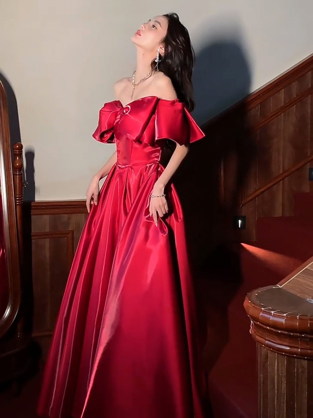 水光缎一字肩礼服