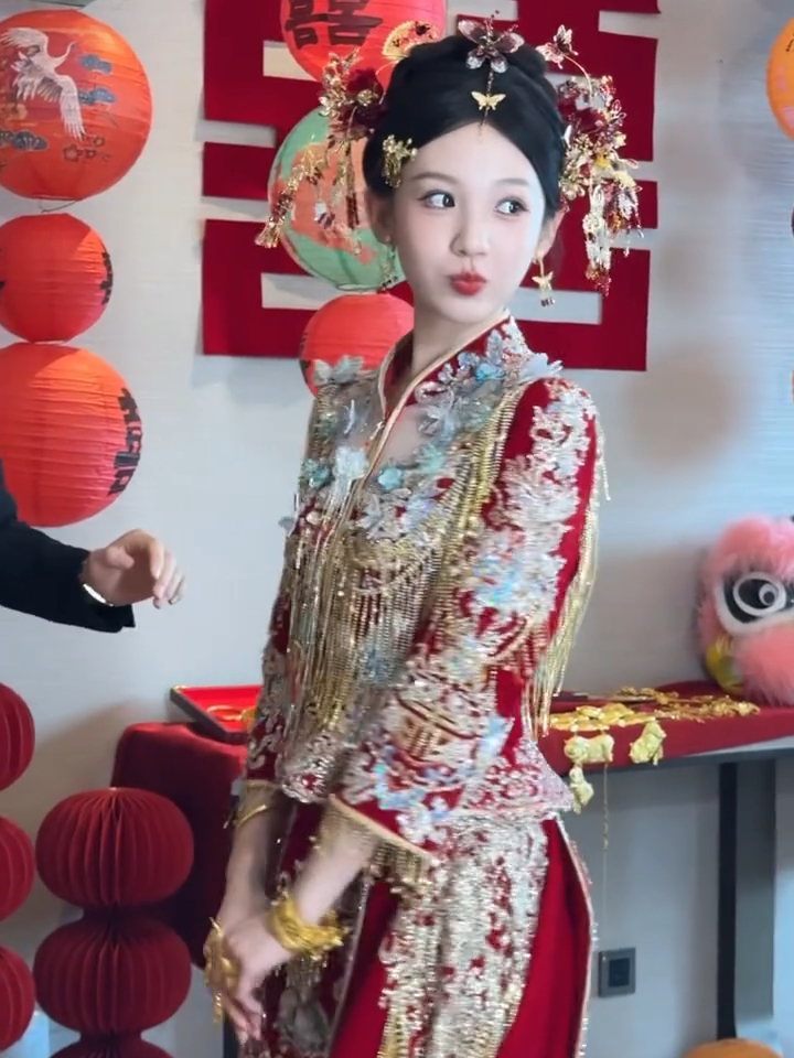 浅金+红色精致秀禾