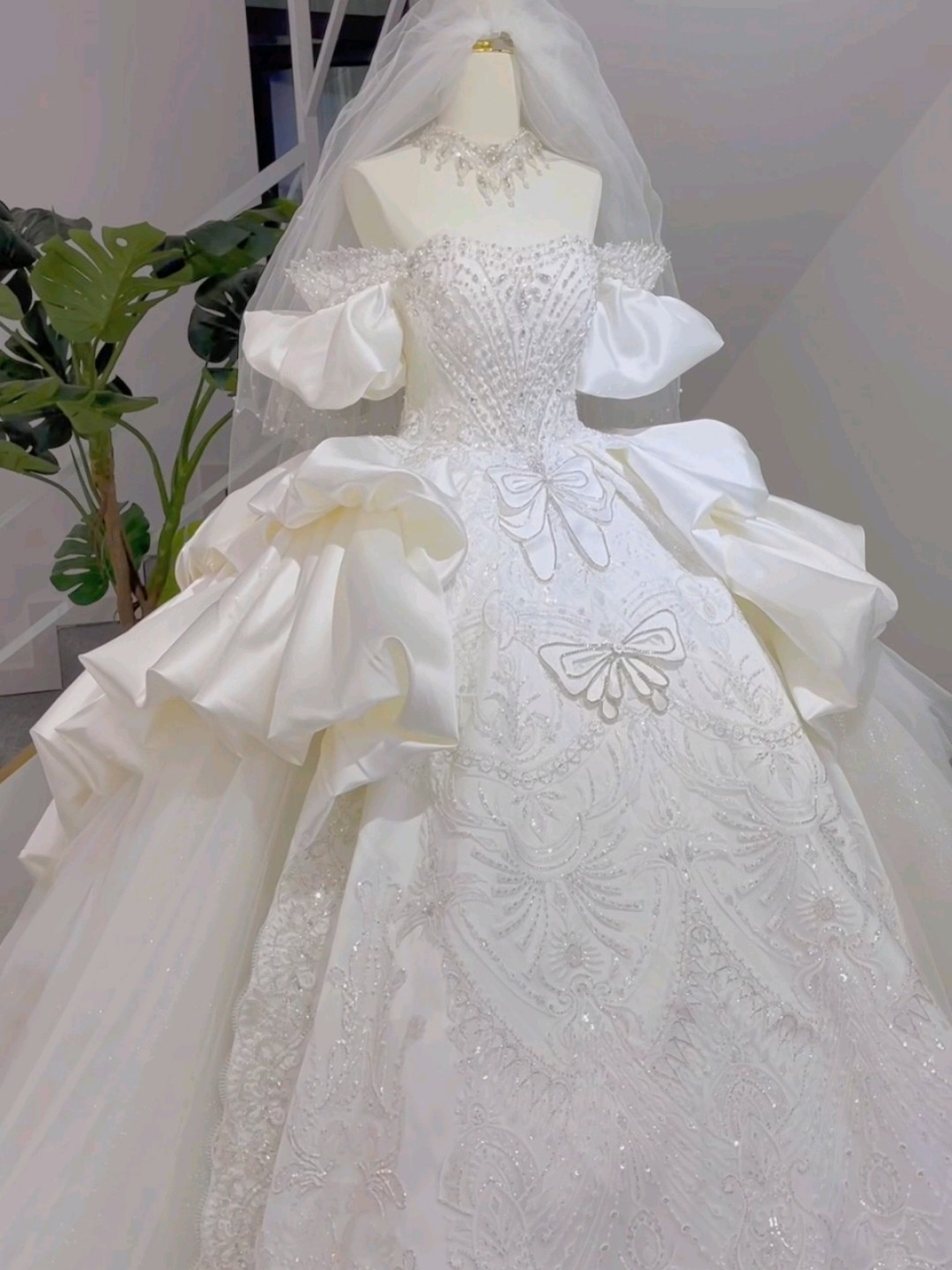 《艺境婚纱》蝴蝶结缎面公主纱