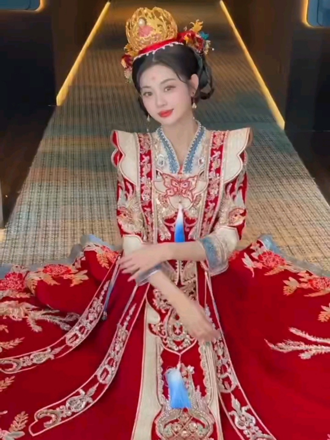 丝绒垫肩秀禾服