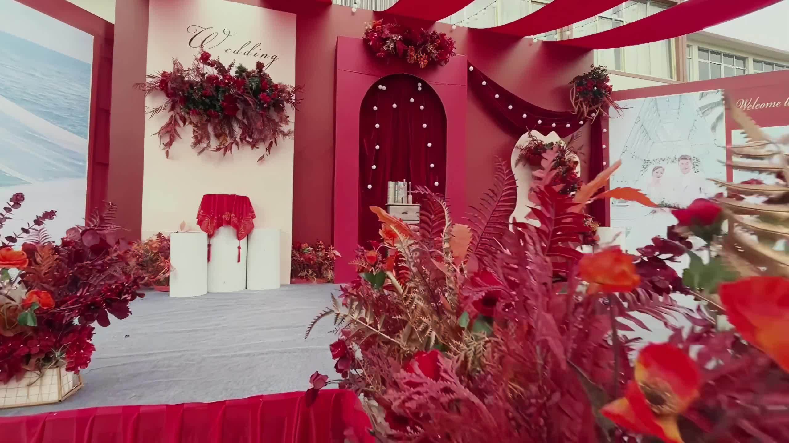 丽匠婚礼-红色布艺吊顶婚礼