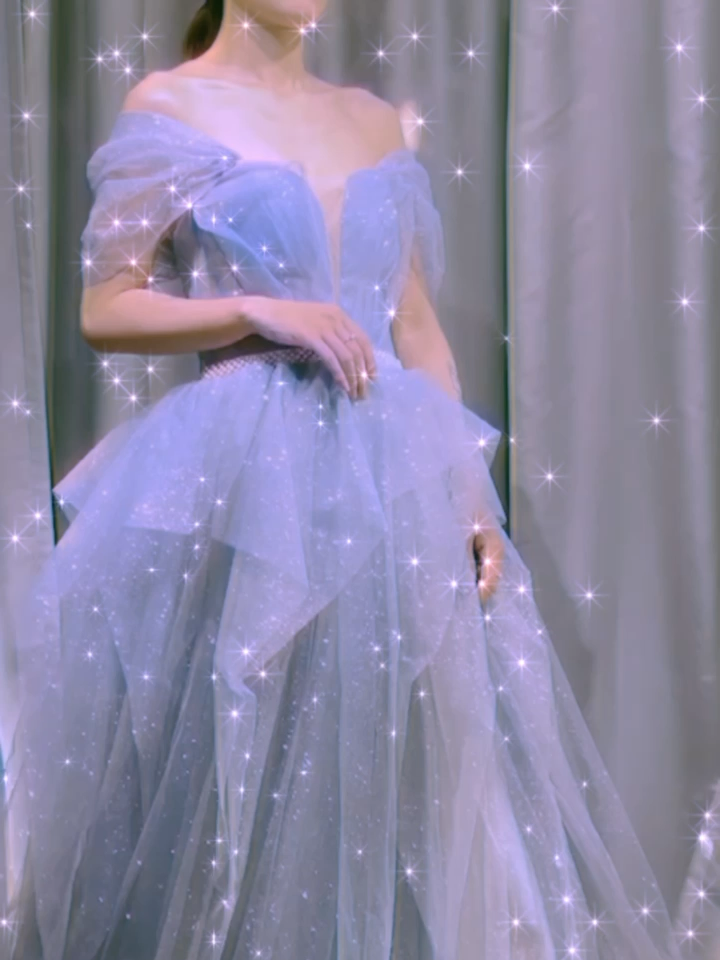 蓝色系浪漫主义晚礼服