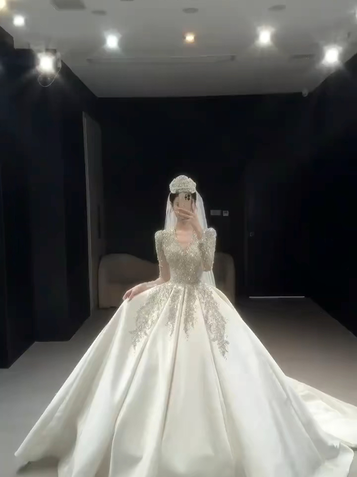 吉娜奢华缎面重工主纱
