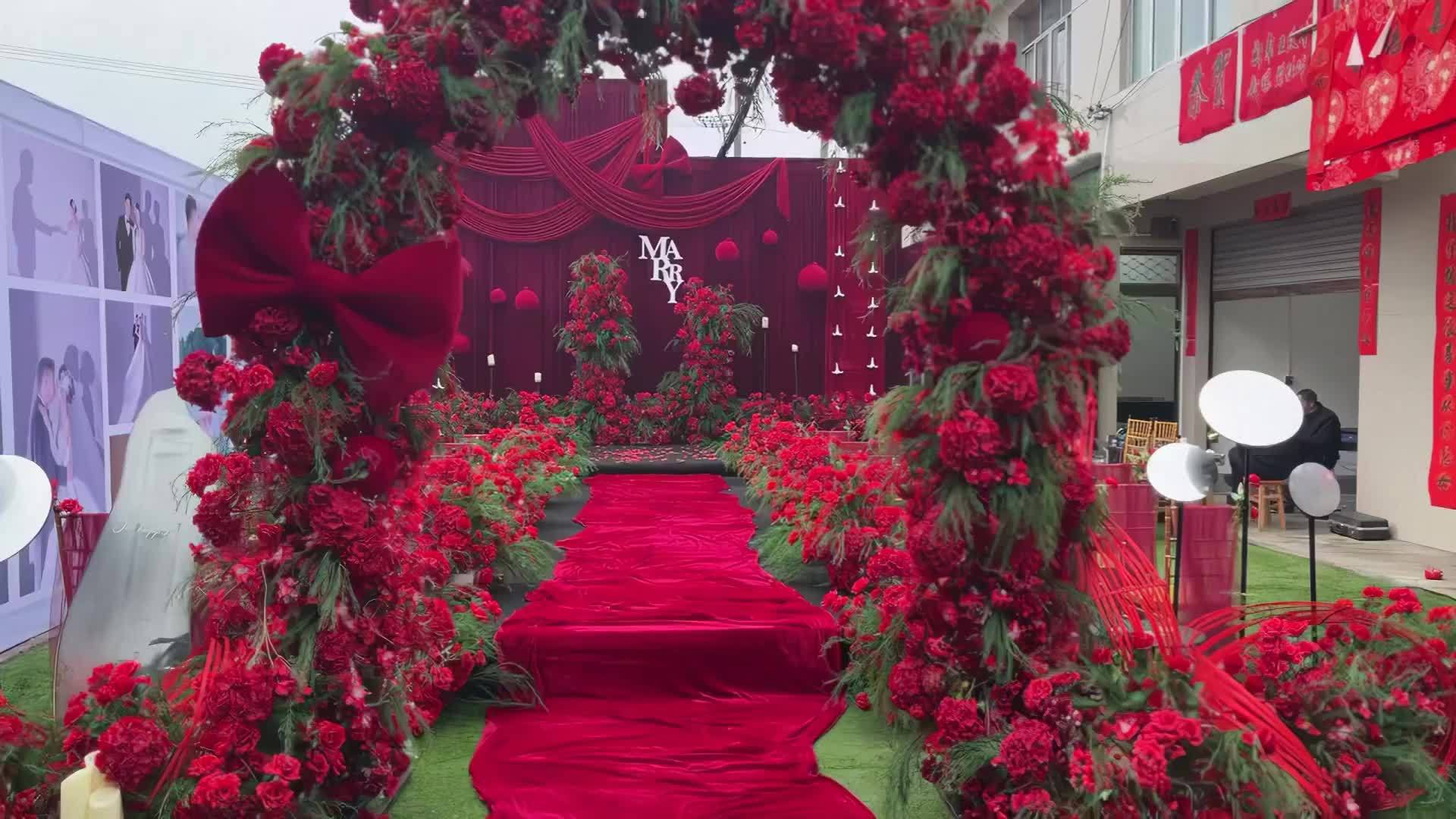 红色布幔挑高婚礼布置