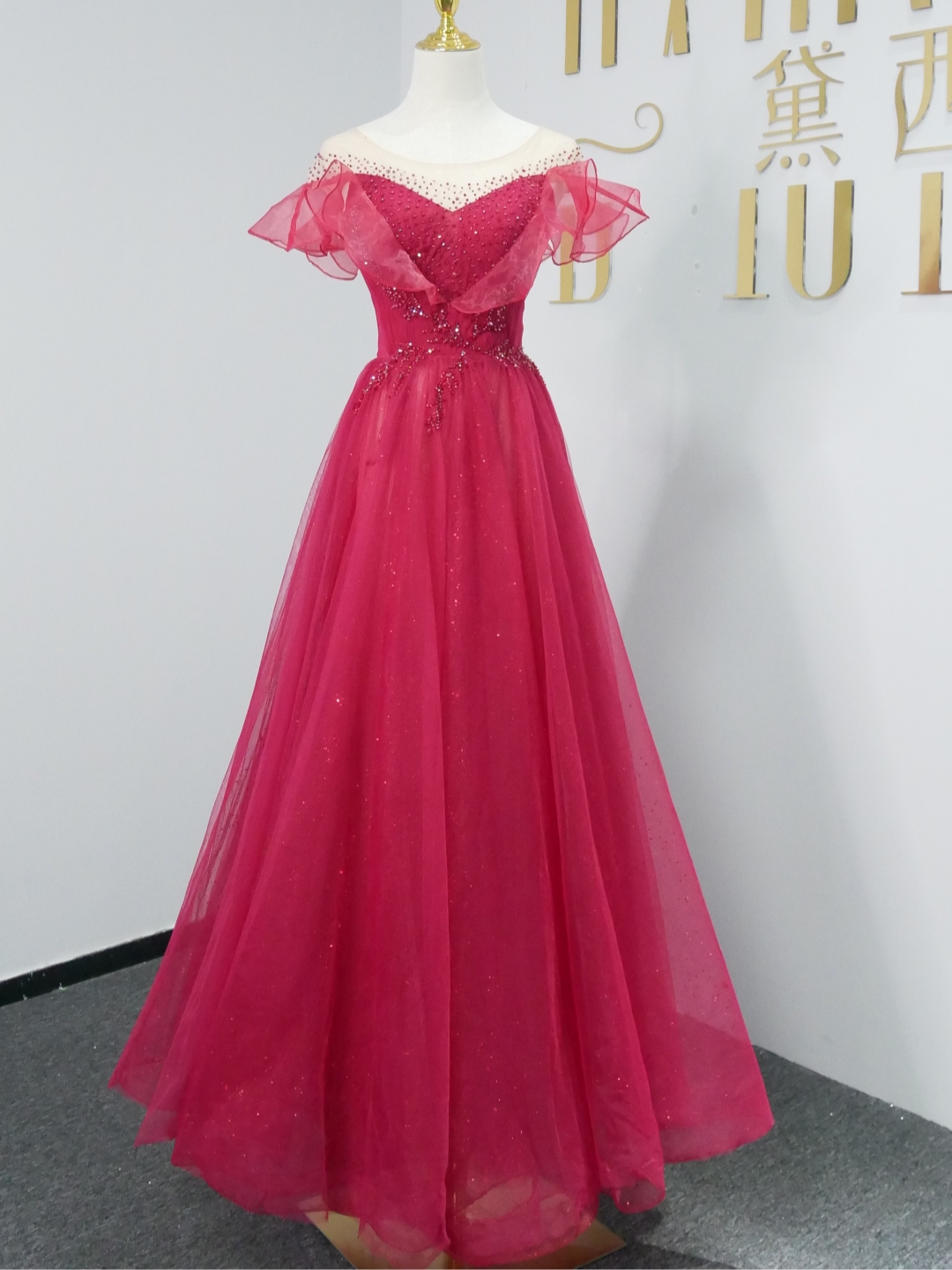 【雨荷】花边钉珠礼服