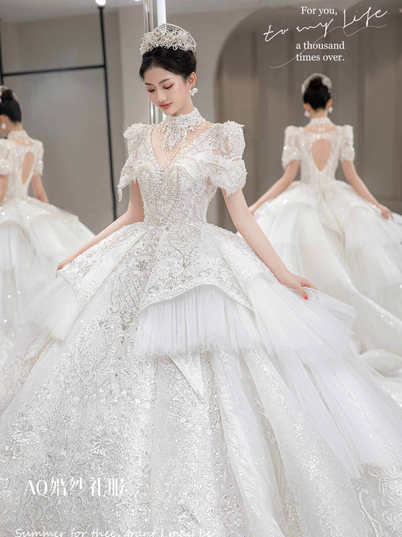 高级品牌设计款婚纱设计师款主纱