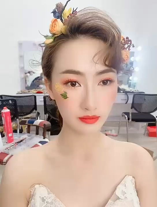 婚礼跟妆,根据客人的脸型设计出想要的妆容和发型