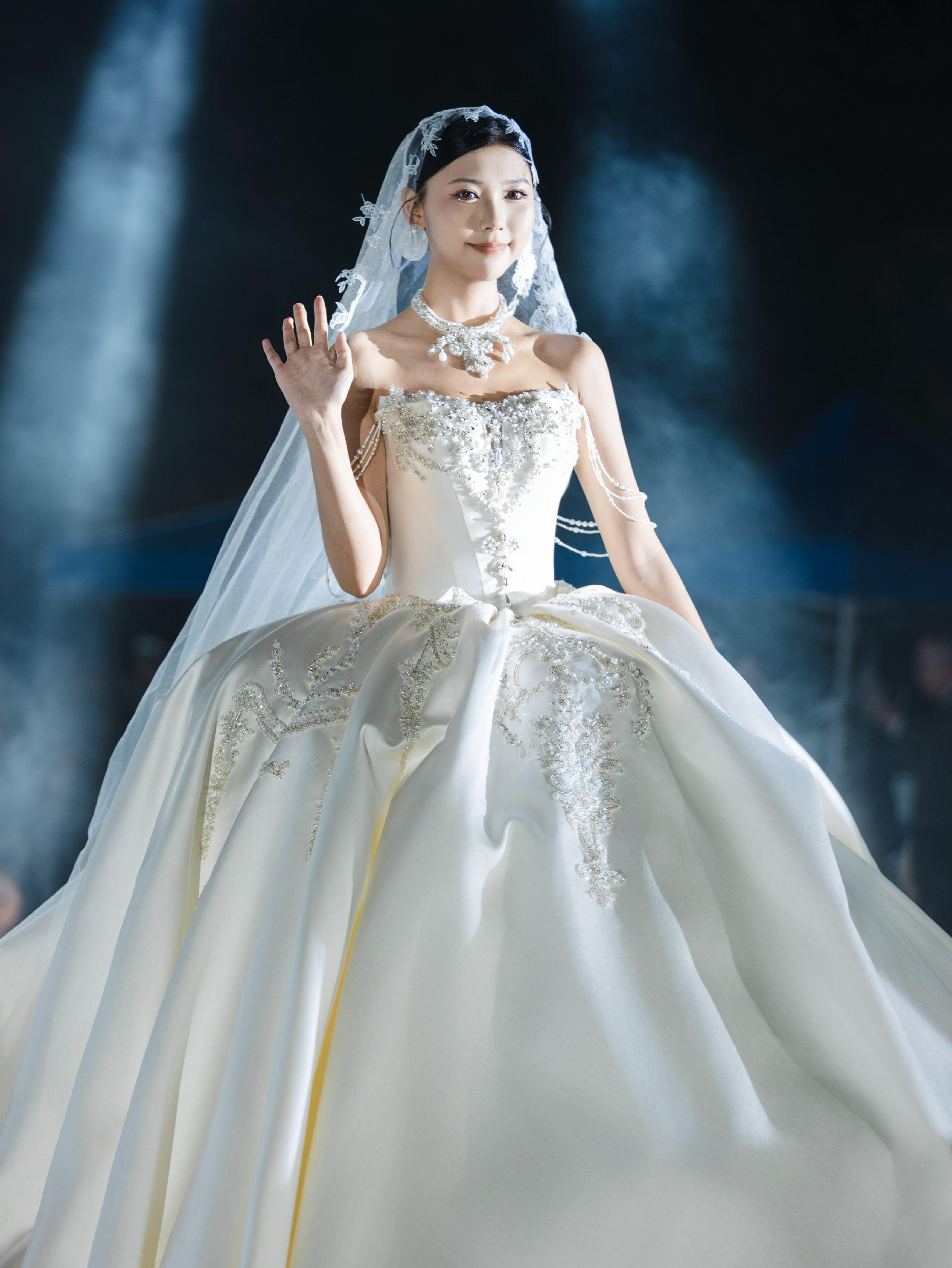 奢华重工钻饰缎面宫廷公主裙