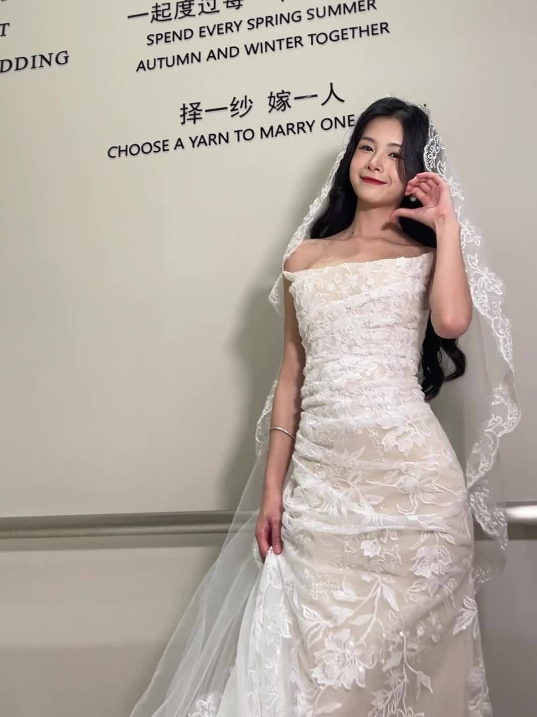 法式抹胸蕾丝鱼尾轻婚纱