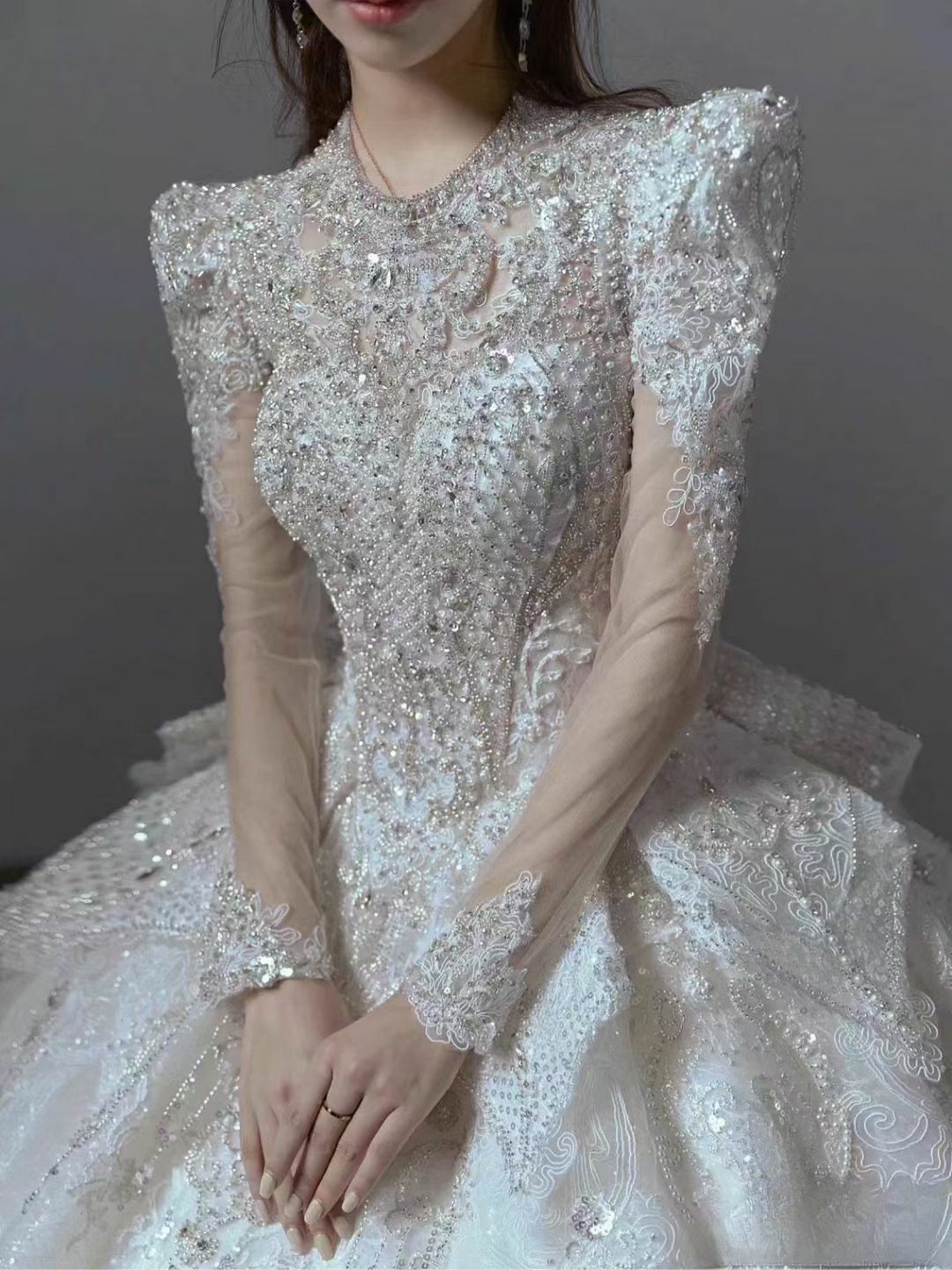 奢华款长拖婚纱