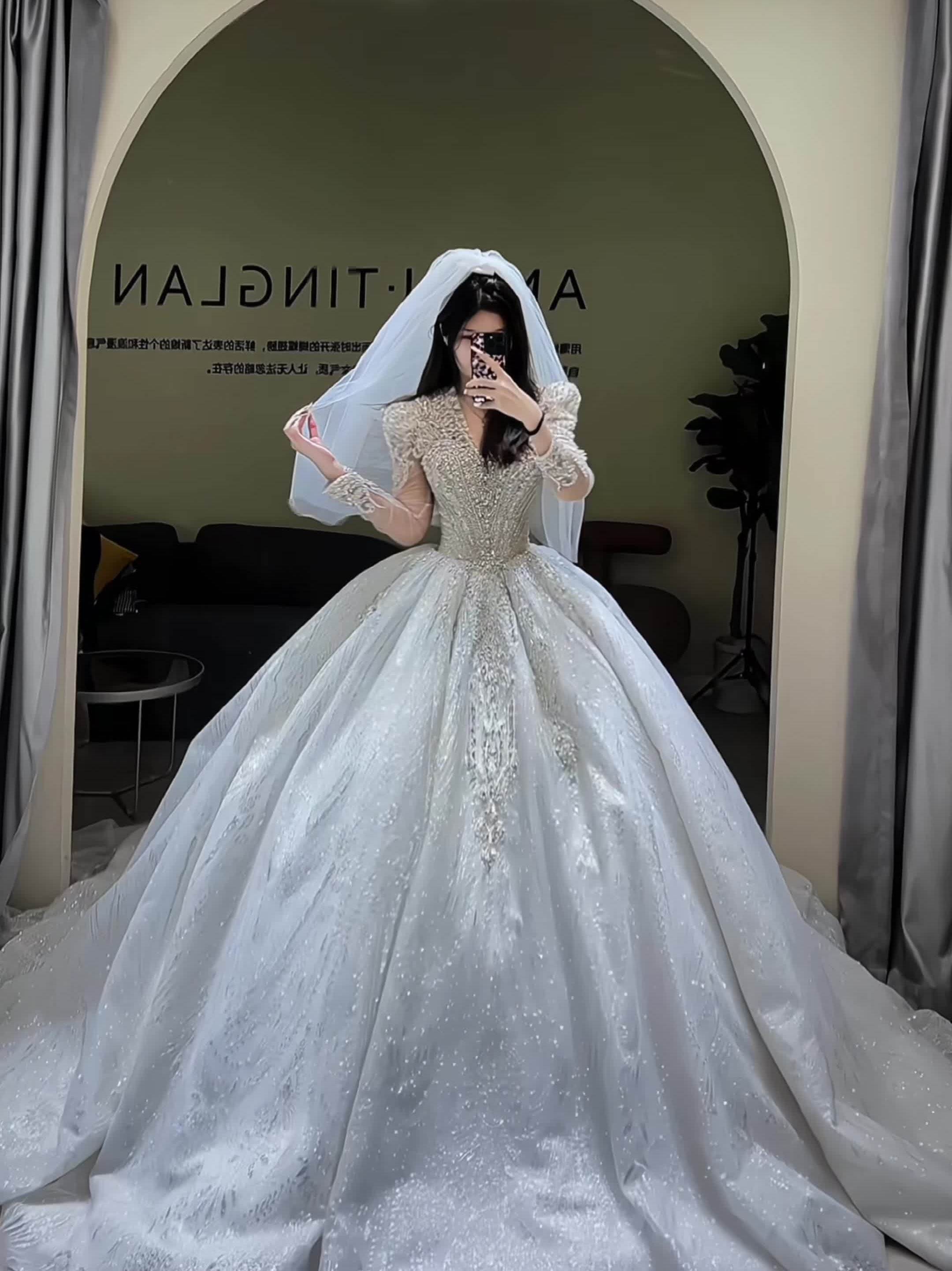 奢华款长拖婚纱