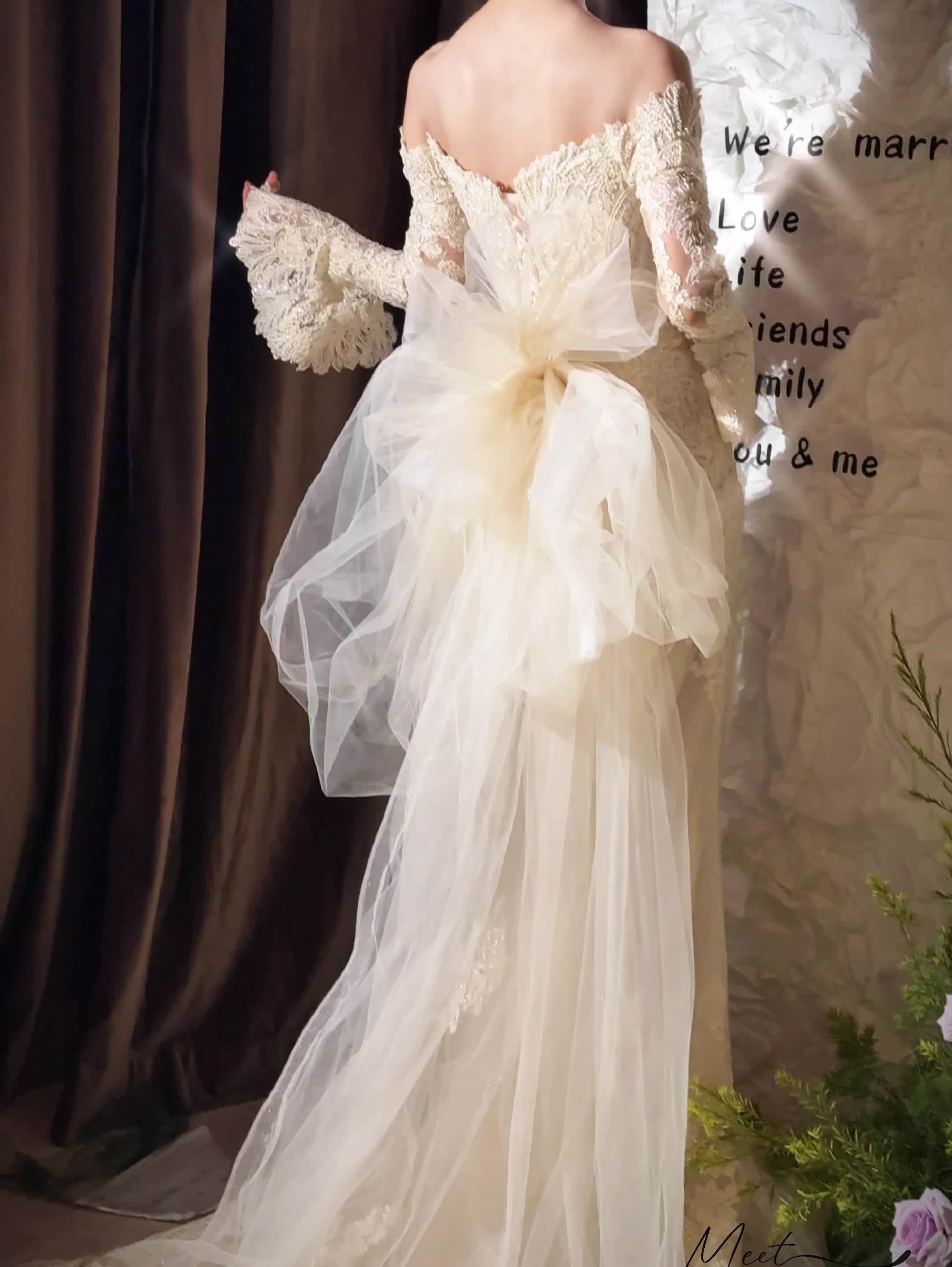 奢华款长拖婚纱