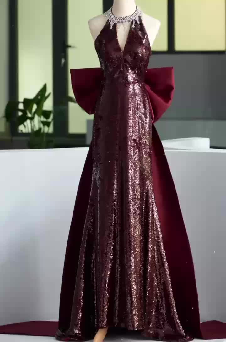 微醺酒红亮片礼服