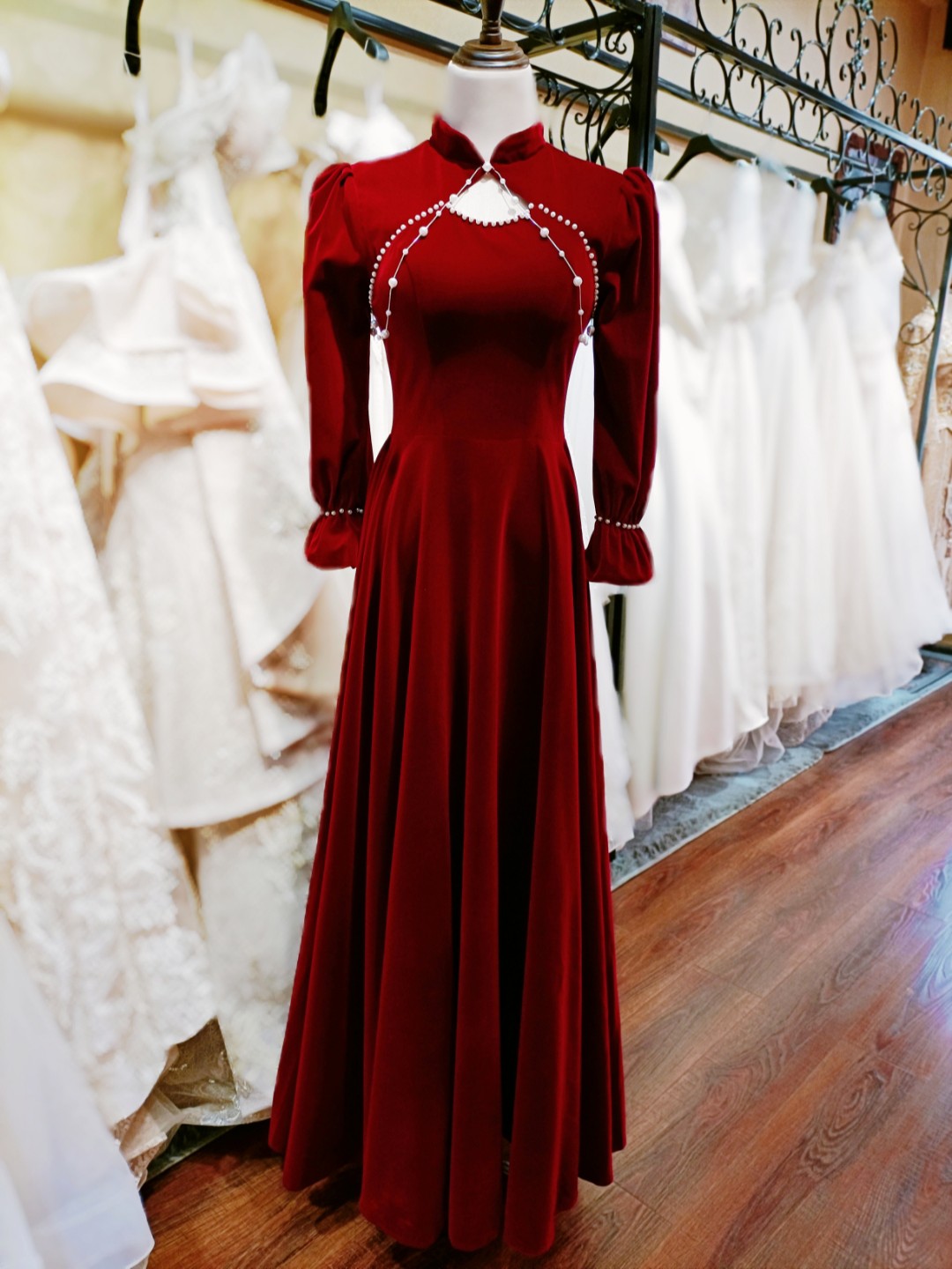 中式丝绒长袖礼服