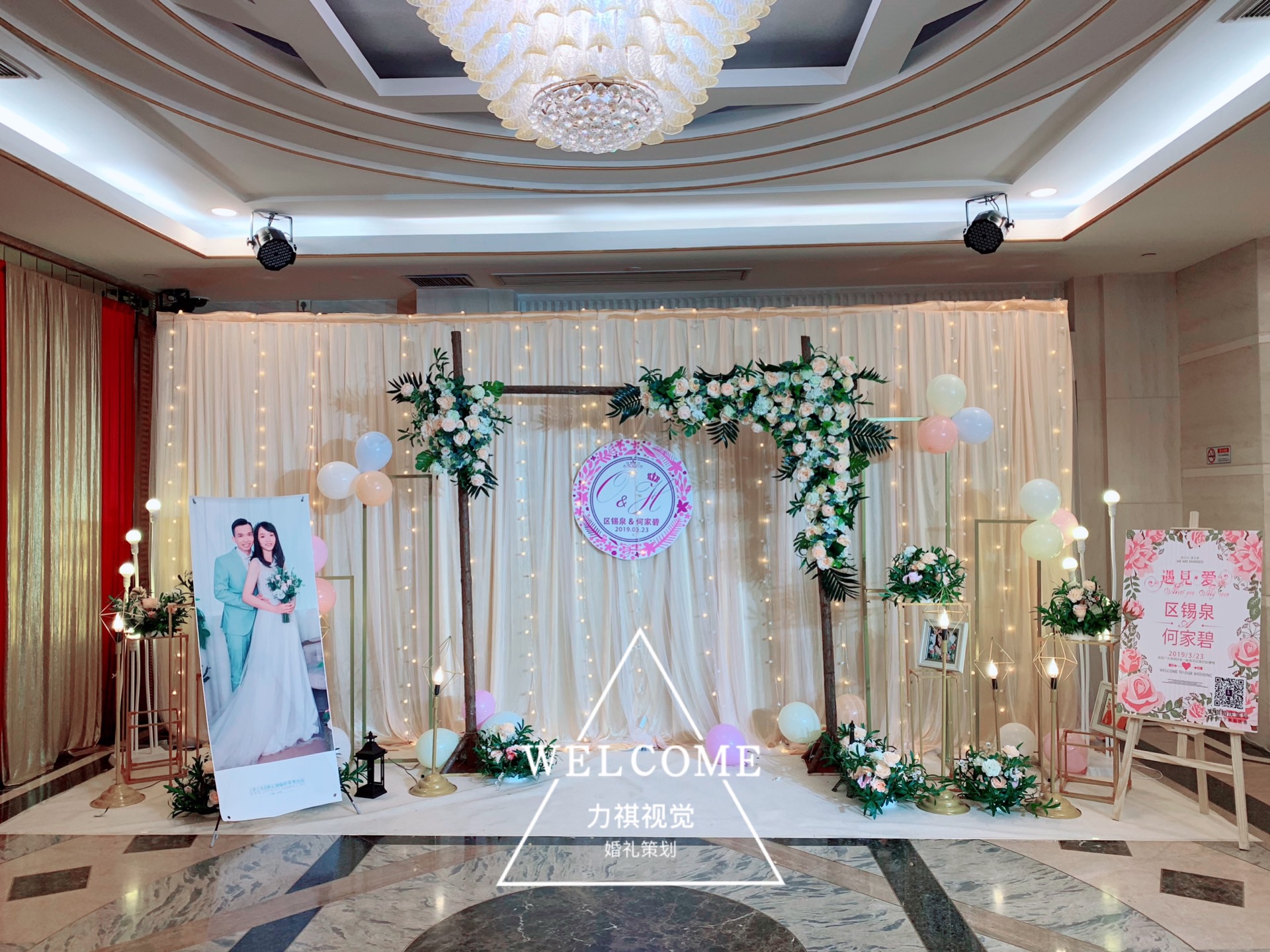 全天跟妆➕全天单机摄影➕全天单机录像➕无限即影即有(独家定制款模板)+独家私人定制款留影区背景3*6米 精致个性化留影区摆件一组 留影区婚礼LOGO私人定制 独家定制款婚礼迎宾牌一个