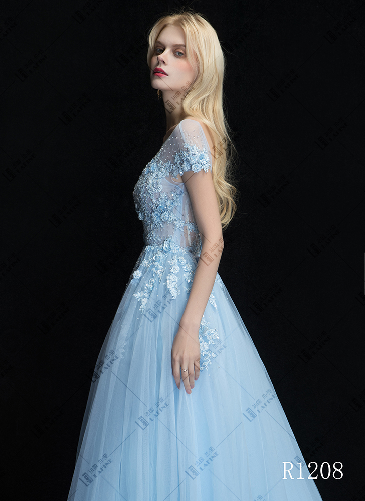 蓝色梦幻婚纱礼服七件套