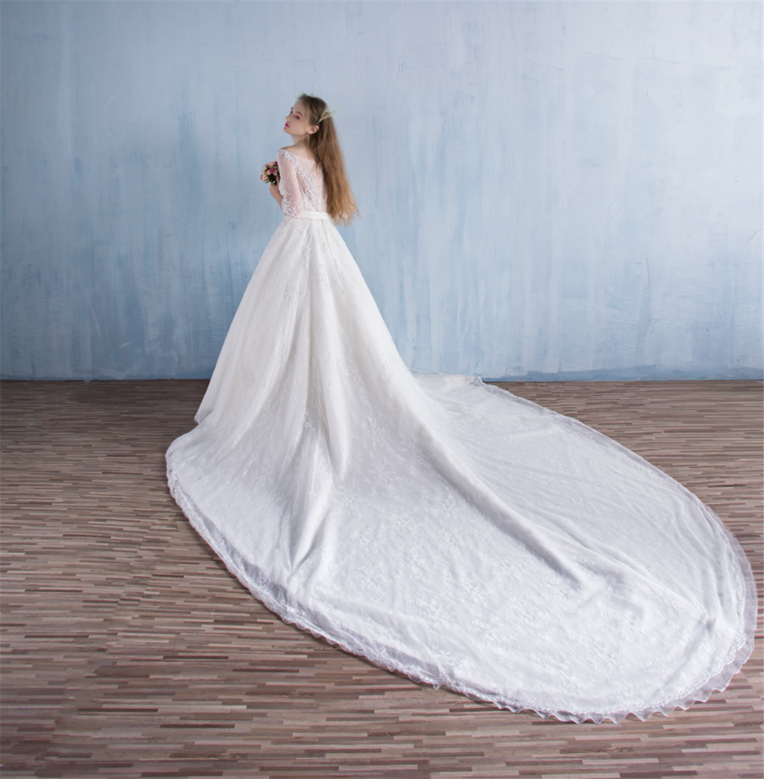 服装包括: 拖尾主纱一件 敬酒服一件 中式卦裙或者齐地婚纱一件 伴娘服两件