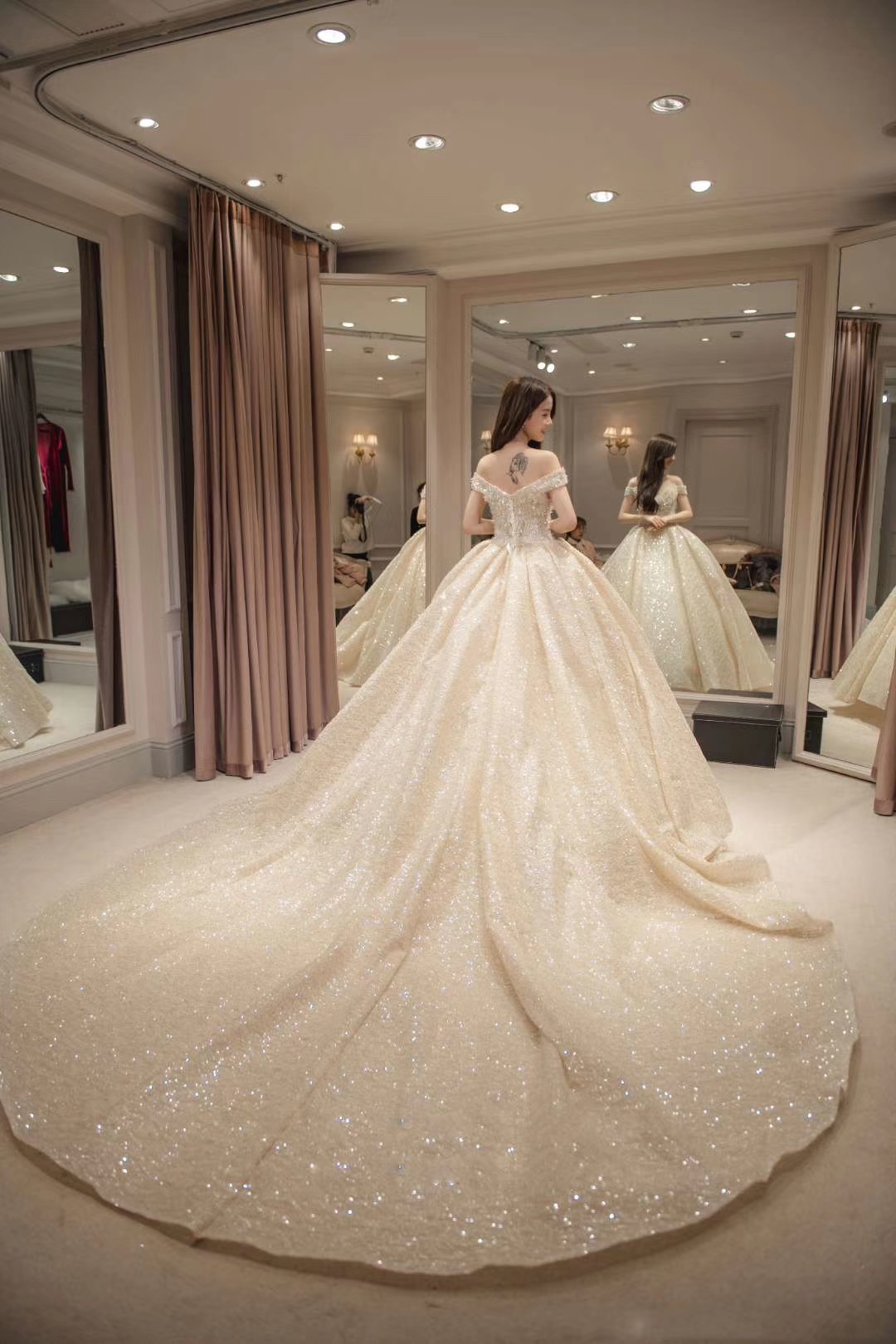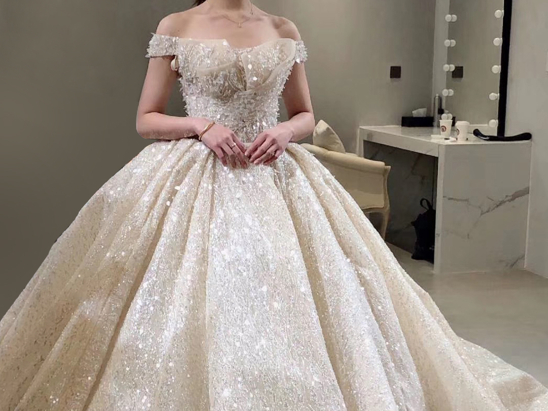 香槟金大拖尾,穿上它你就是最耀眼的女王