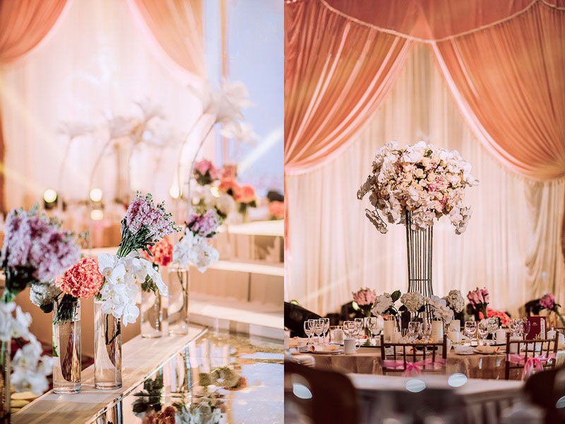 套餐内的方案构思、场地布置、喜好需求、报价明细等婚礼细节,我们都将为您专属定制,会根据每一对客人的喜好要求结合场地情况和预算做整体方案及报价。100%的专业加100%的热情等于您选择我们。