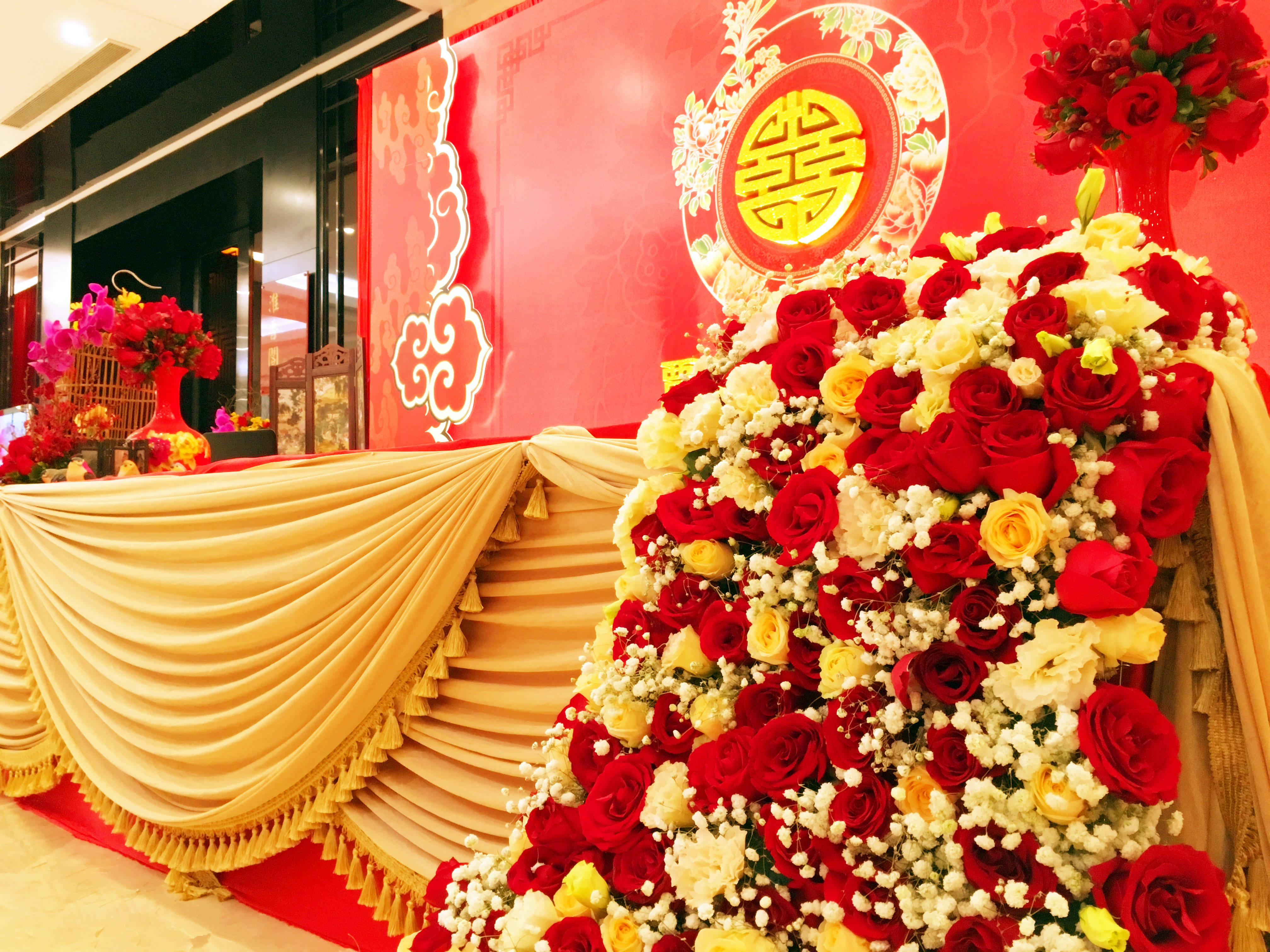 1、婚礼布艺,背景设计(限5m*3.5m内尺寸)