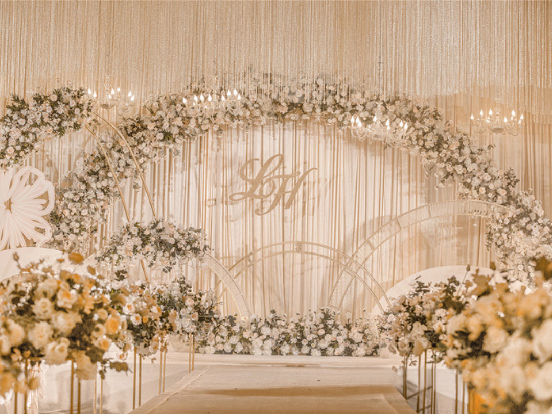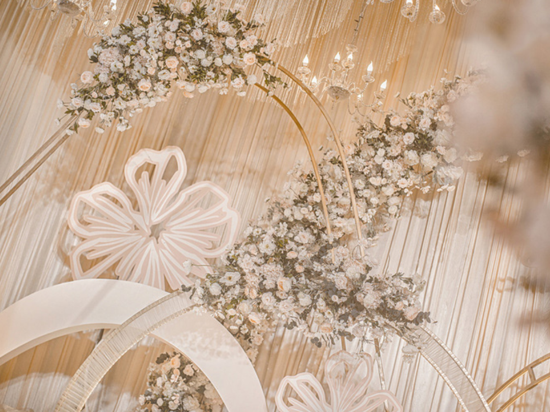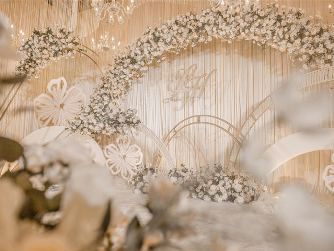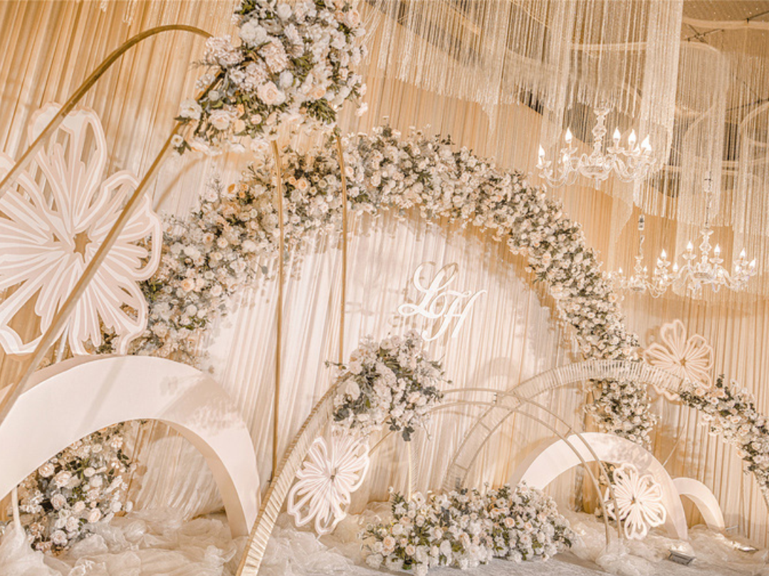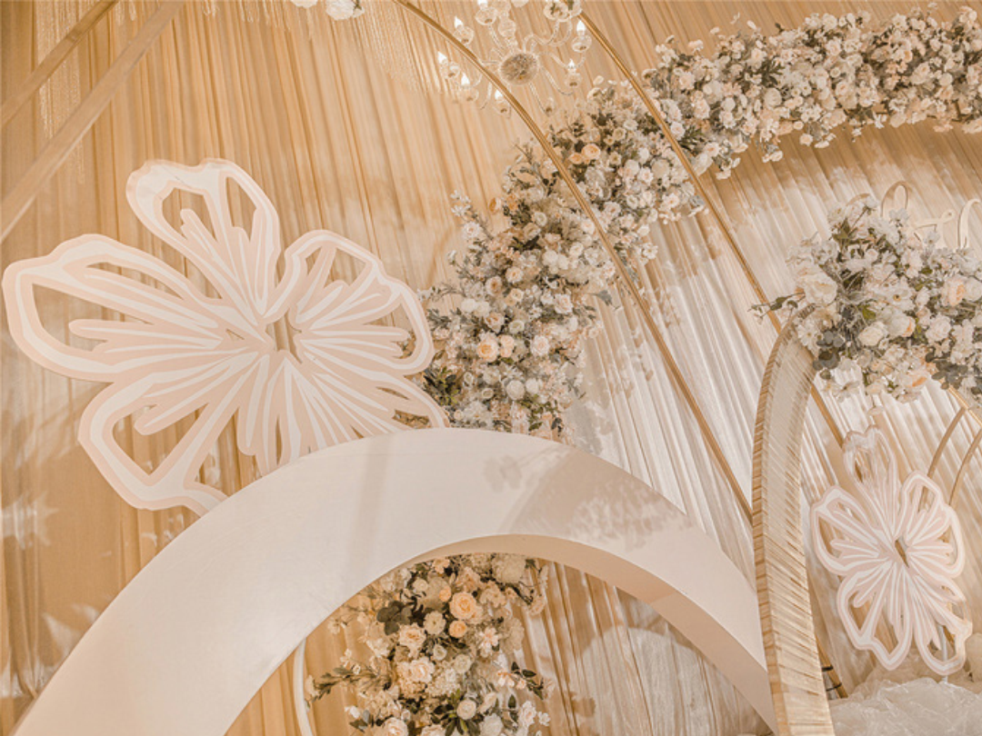 1:超大豪华布艺帷幔背景(3M*6M复式三块背景)结合KT板造型/豪华布艺帷幔(3M*4M)高清写真喷绘(3M*2M)组合背景/豪华布艺背景(3M*6M)和KT板造型组合背景/豪华飘顶一个(3M*6M)结合KT板造型2:精美定制雪弗板花瓣装饰1组 3:设计师一对一专设计属设计KT板造型(30平方内) 4:豪华金色罗马盆路引和花艺装饰8个/花瓣龙珠灯路引8个(二选一)5:唯美欧式铁艺花艺竖琴1套 6:欧式时尚铁艺贵妃椅1套和花艺装饰 7:豪华浪漫高仿真樱花树1棵 8:专业钢结构T台10M*1.8M 9:T台末端花艺装饰10:T台两侧高仿真花艺花排11:红地毯或主题色地毯