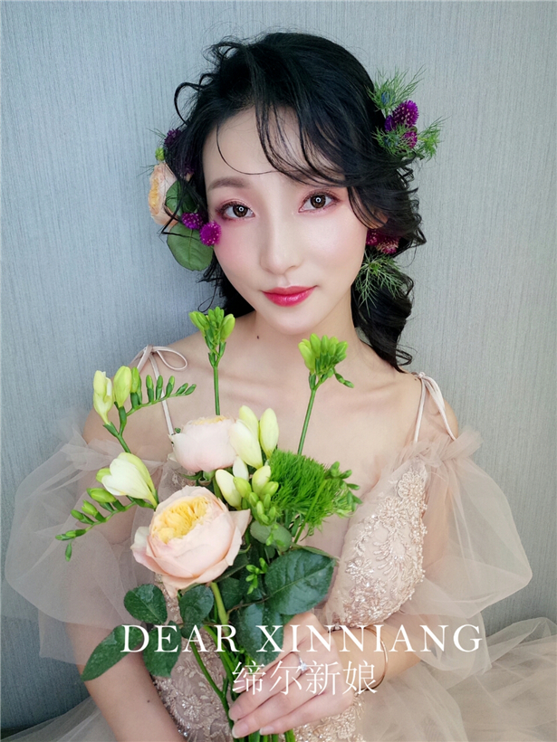 干净通透的底妆,搭配上鲜花造型,尽显浪漫,唯美,超级减龄噢。
