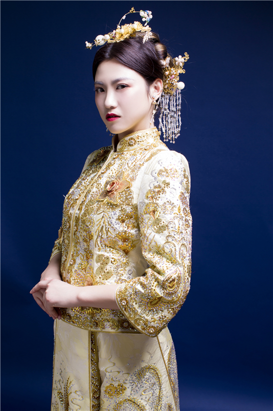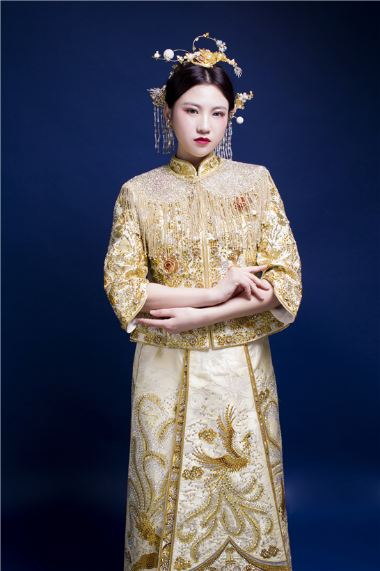 一件完美的中式嫁衣,古典与美的结合,霸气又隆重,古典又端庄,不但是一件幸福的嫁衣,更是一件有生命力的艺术品