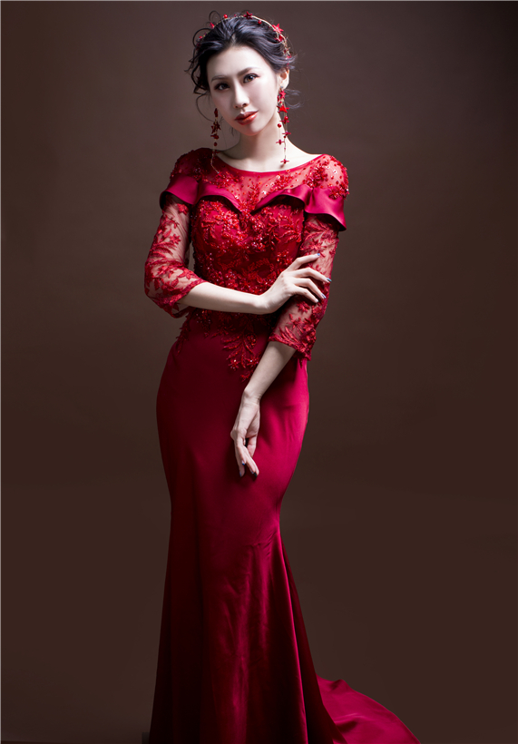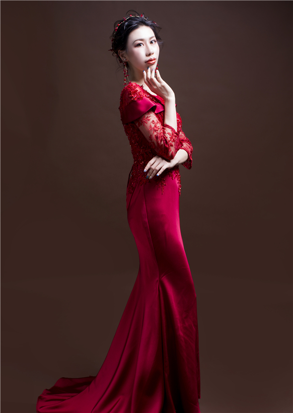 一场婚礼少不了一袭红色礼服,高级缎面的鱼尾款,低调大气的高级感,精致而不失典雅,完美的收腰设计,全场最佳气质款,敬酒服的最佳选用。